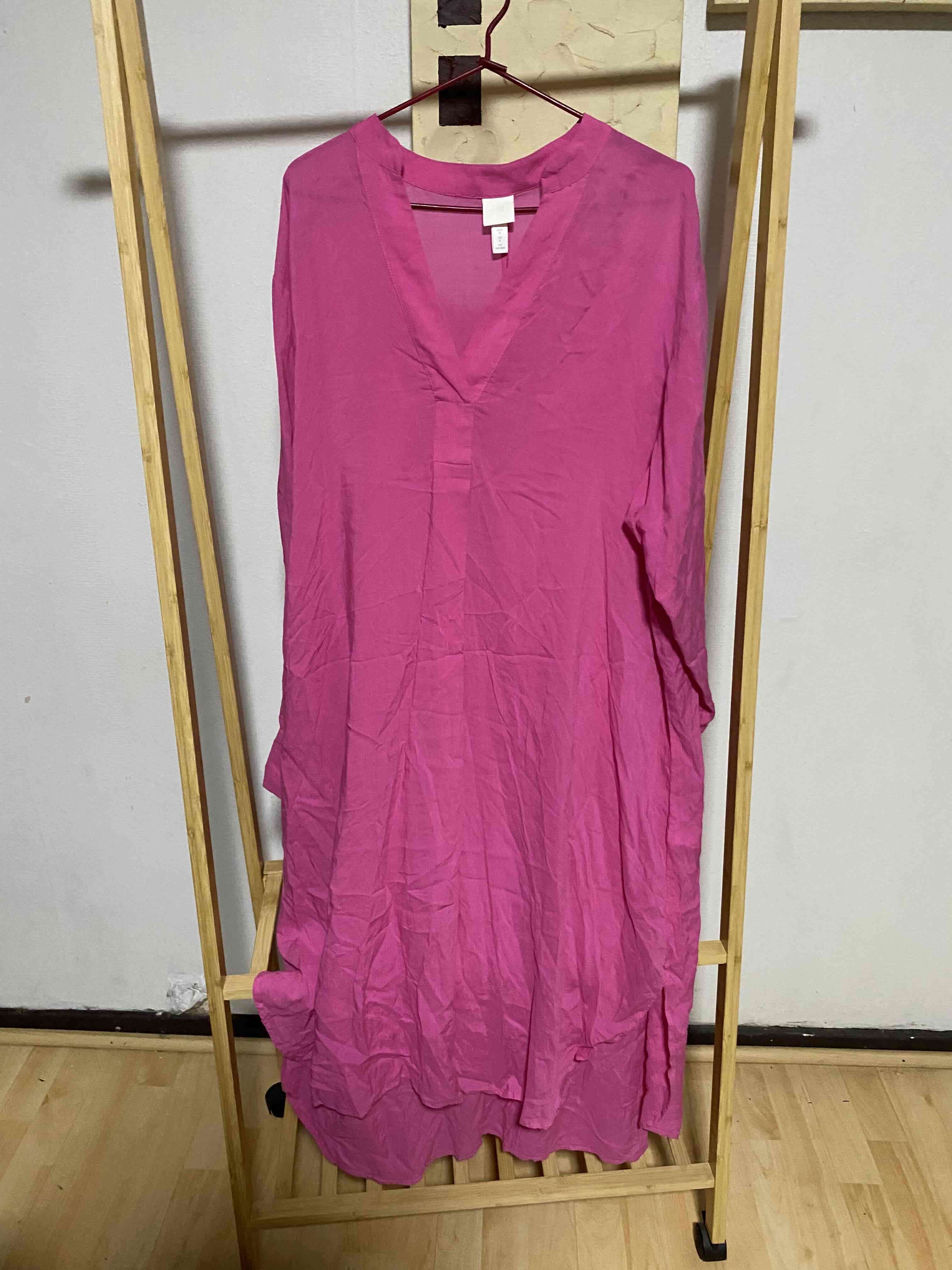 Vestido largo de color fucsia, ideal para el verano. En buen estado, con tela ligera y fresca para usar en días cálidos.