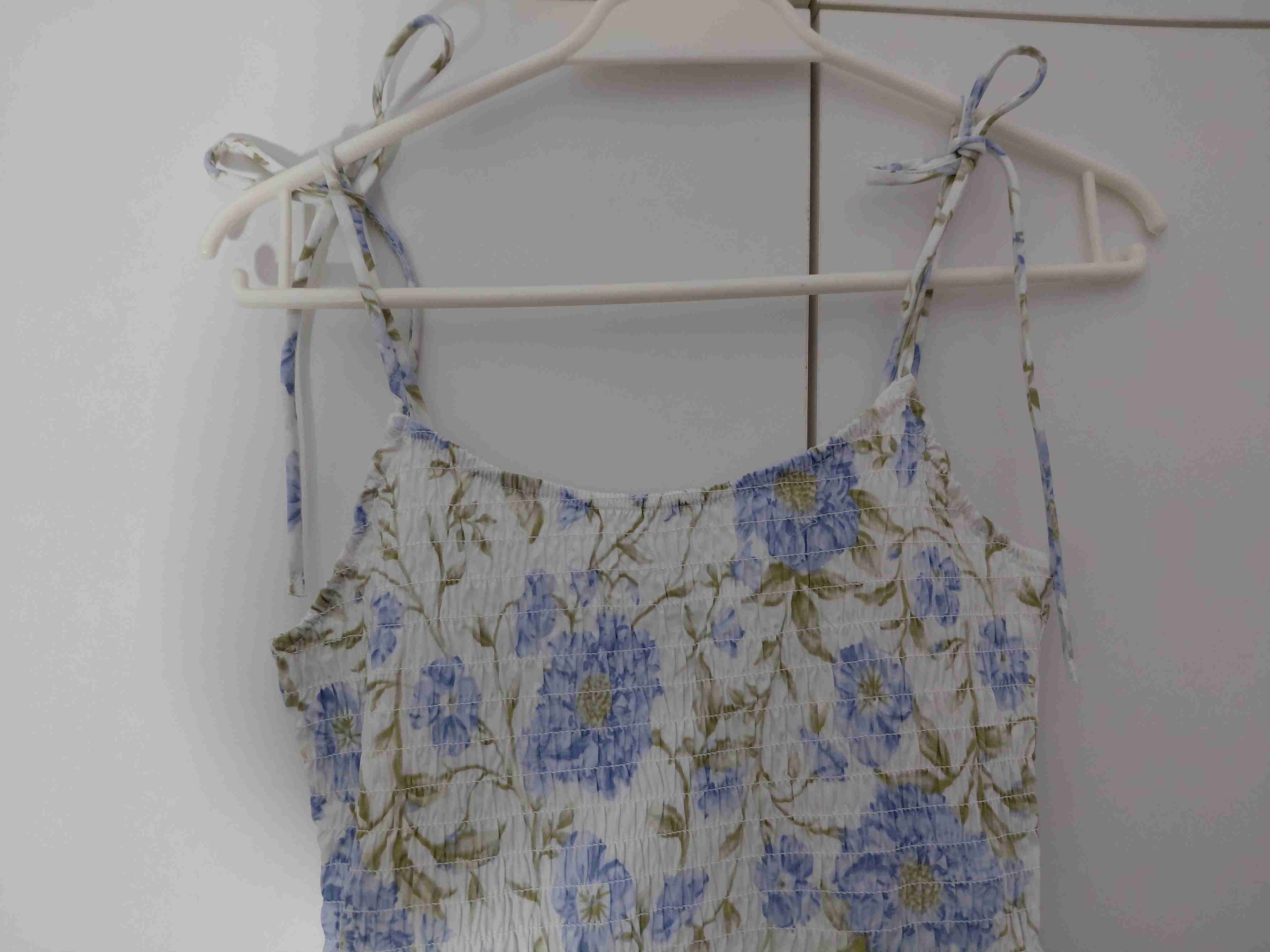 ✨ Romántico, Fresco y ¡SIN USAR! ✨ Vendo este hermoso vestido largo de la colección DIVIDED de H&M. Es de tela liviana con un estampado floral precioso en tonos azul y verde sobre fondo blanco. ¡Ideal para los días de calor! Estado: Totalmente nuevo, 0 usos. Es de la temporada actual. Lamentablemente, perdí la etiqueta, pero está impecable. Calce Perfecto: Todo el torso es de nido de abeja (panal), lo que lo hace súper elástico y cómodo, adaptándose muy bien al cuerpo. Detalle Lindo: Los tirantes son de amarrar, así que tú misma ajustas el largo armando una linda rosita en los hombros. Talla: S (pero cede un poco gracias al elástico del torso). 💰 Precio: $11.000 (conversable) ¡Es una joyita de temporada a un súper precio! Escríbeme al DM. 🌿🌸