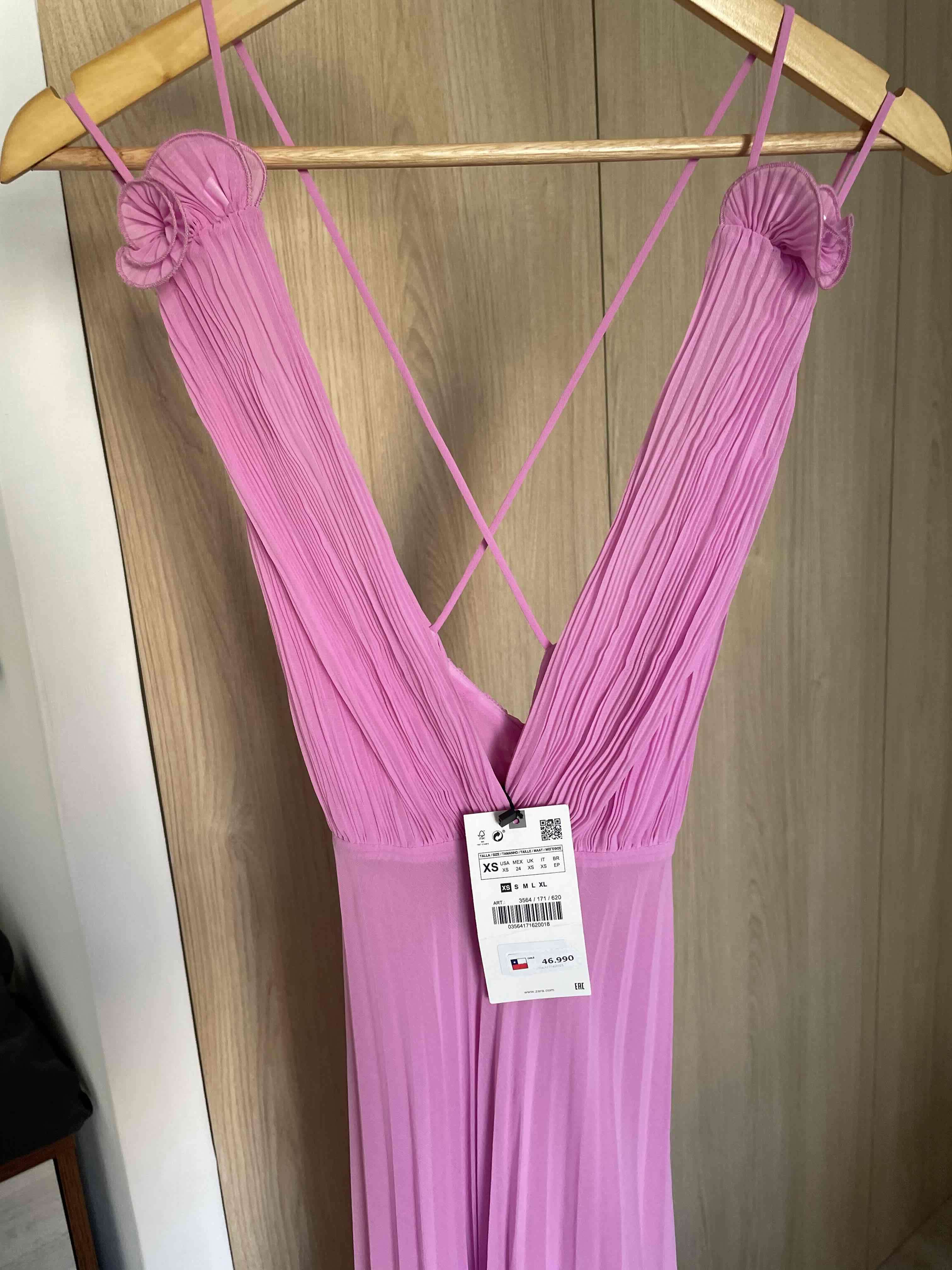 Hermoso vestido largo en color rosa, elegante y con diseño plisado marca ZARa, nuevo, sin uso, con etiqueta. Ideal para ocasiones especiales. Valor nuevo $46.990