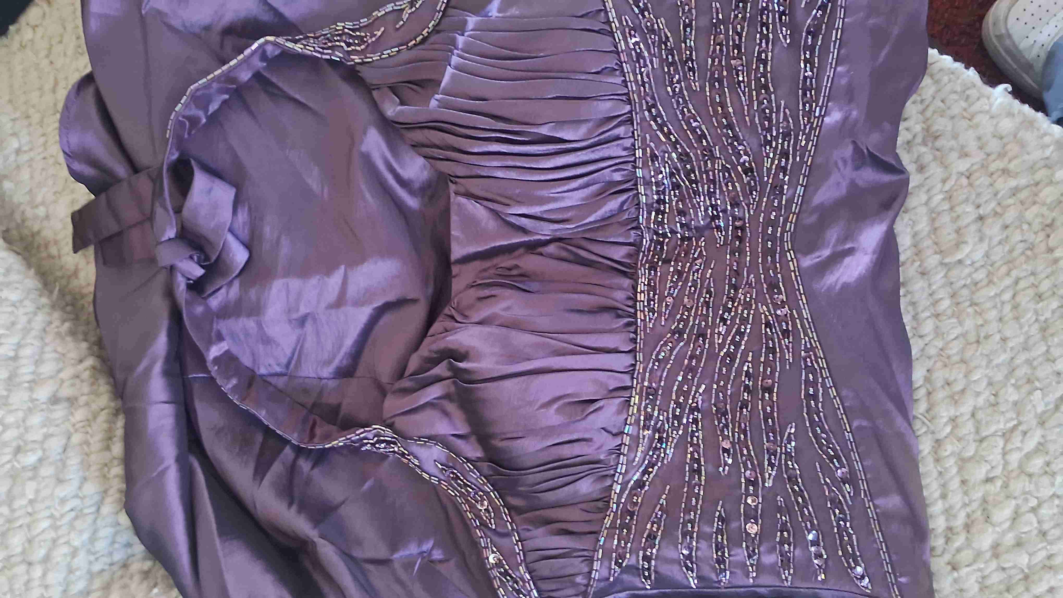 Vestido elegante de fiesta color malva, diseño con tirantes al cuello con detalle de piedreria en pecho. Ideal para matrimonio.
