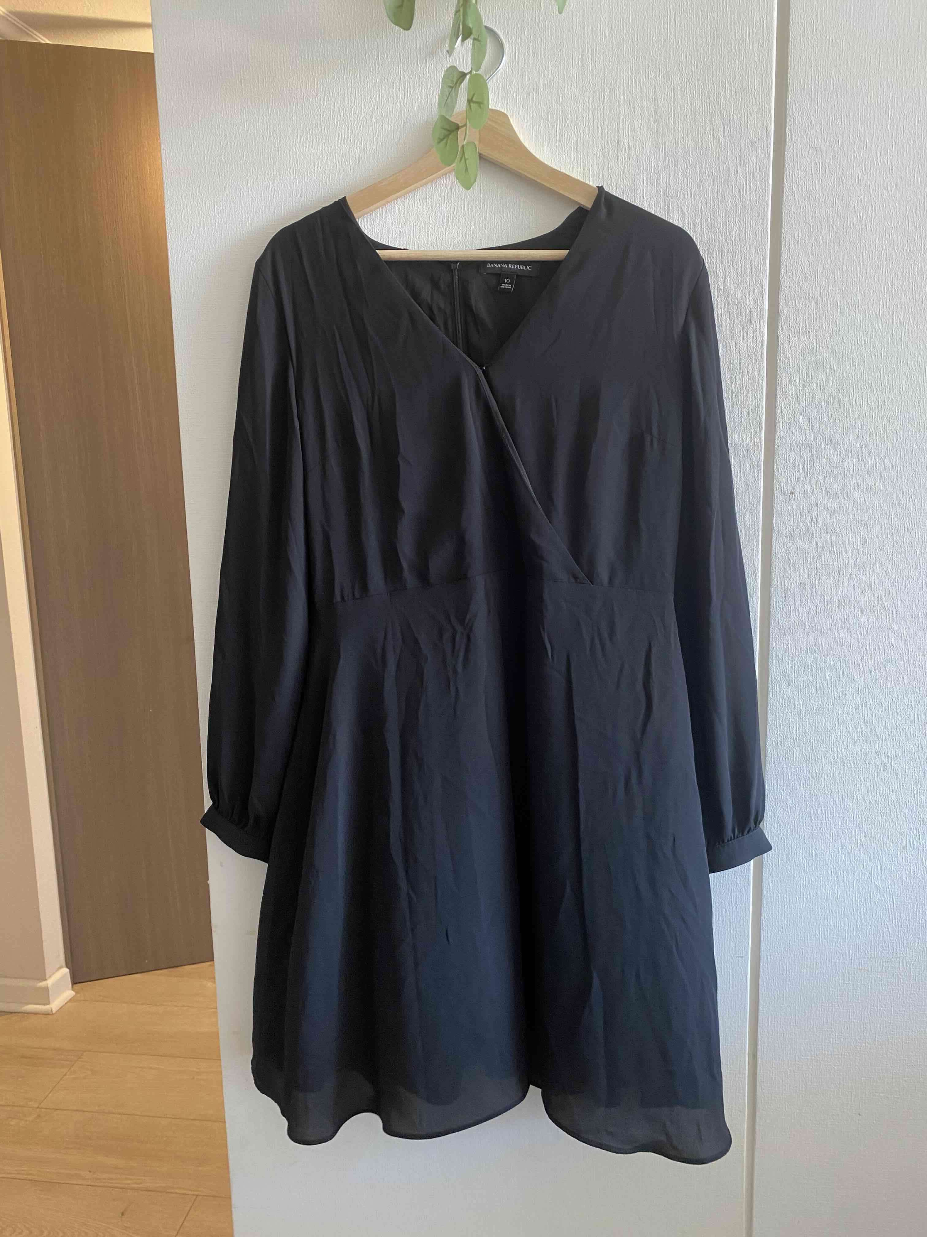 Vestido Banana Republic negro de manga larga, ideal para ocasiones formales. Estado impecable y diseño elegante. Talla M.
