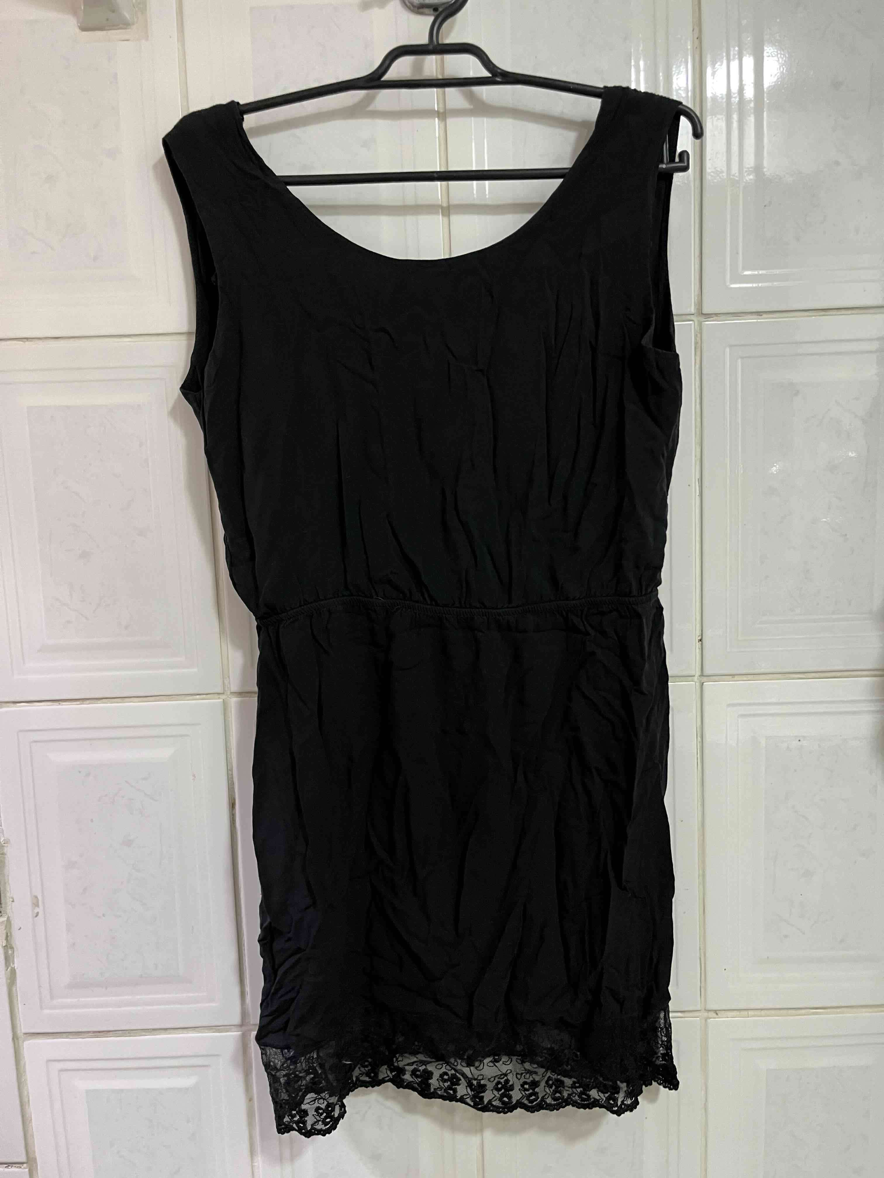 Vestido negro sin mangas ni espalda con detalle de encaje Largo 84 cm Dice talla única pero es como talla M