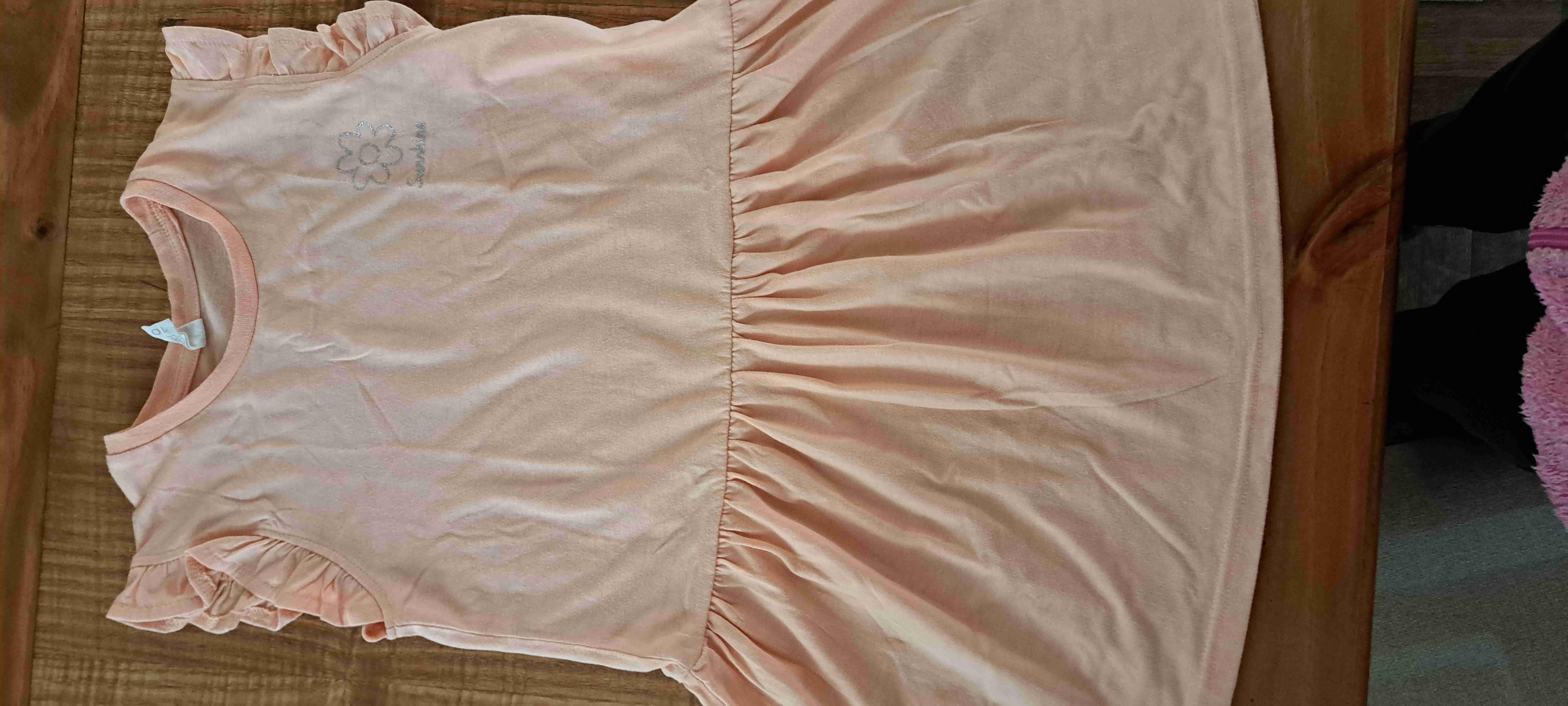Vestido de niña con diseño de gatitos y flores, ideal para el verano y de color damasco, En buen estado. Talla 6 Amos 6000
