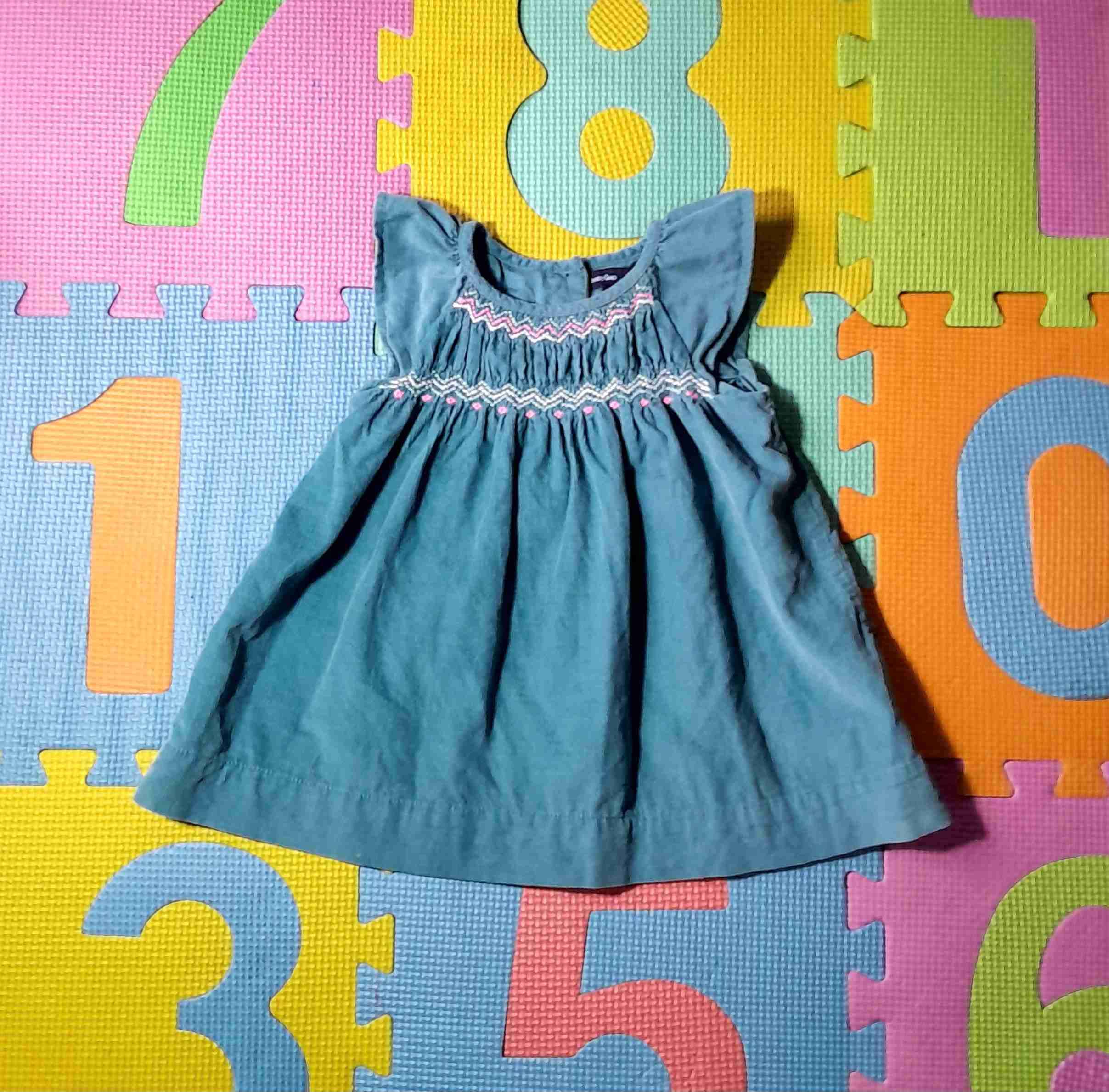 Vestido con detalles bordados. Perfecto para el verano, tela muy parecida a la pana. Marca GAP Hasta 12 meses