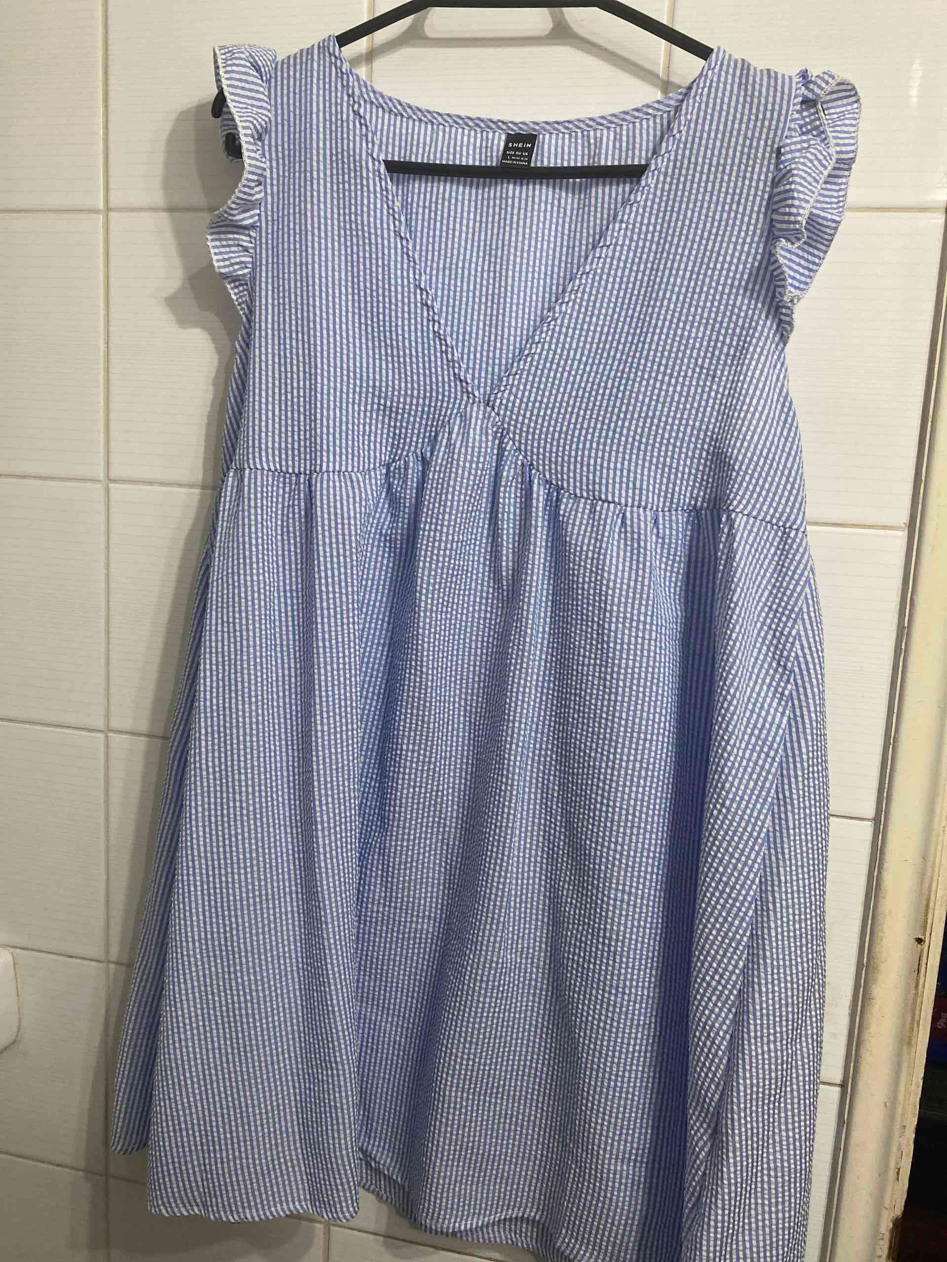 Vestido azul claro con diseño a rayas, perfecto para ocasiones casuales. Sin uso. Talla L