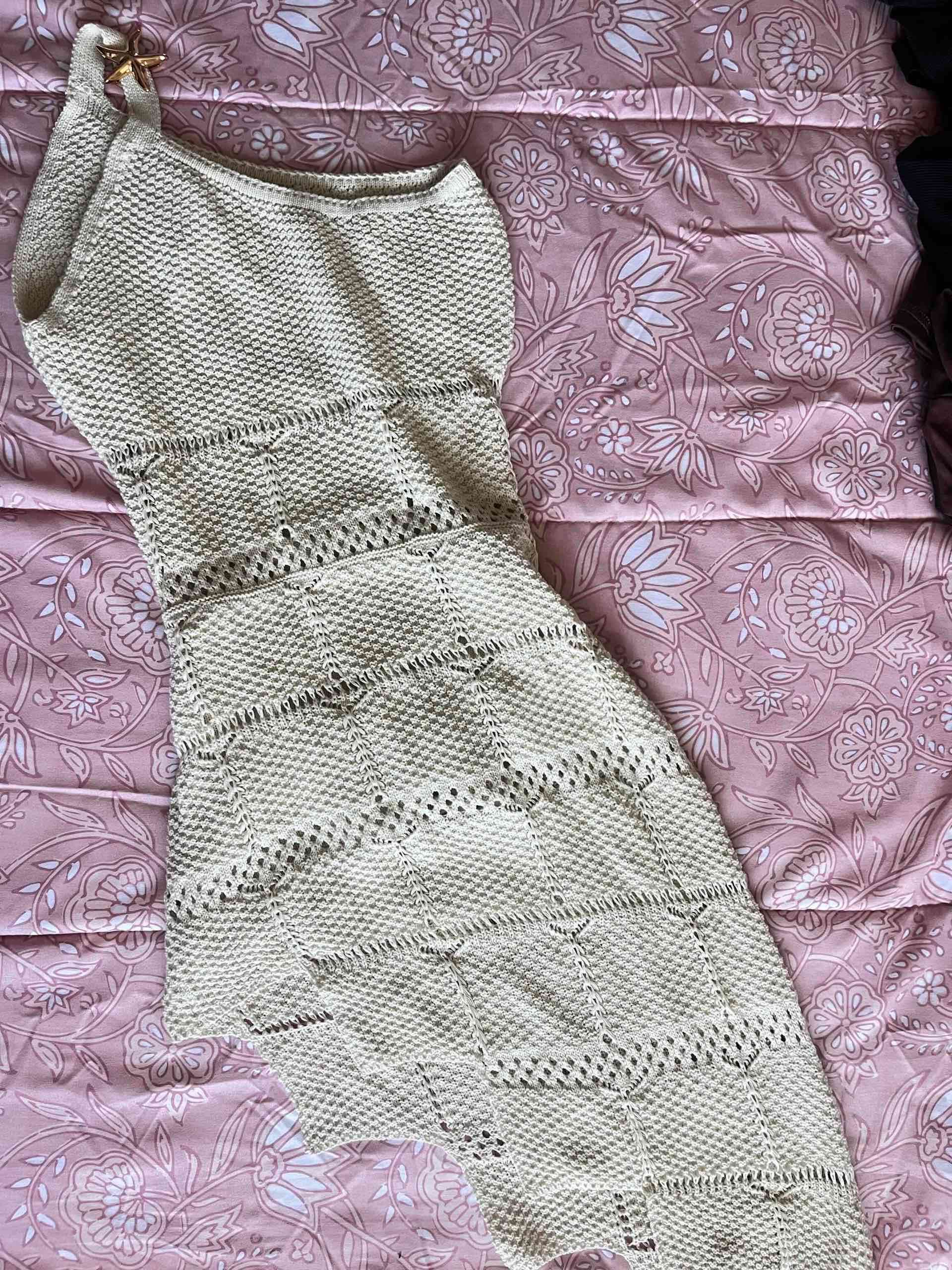 Vestido tejido de punto en color beige, ideal para ocasiones especiales. En buen estado NUEVO