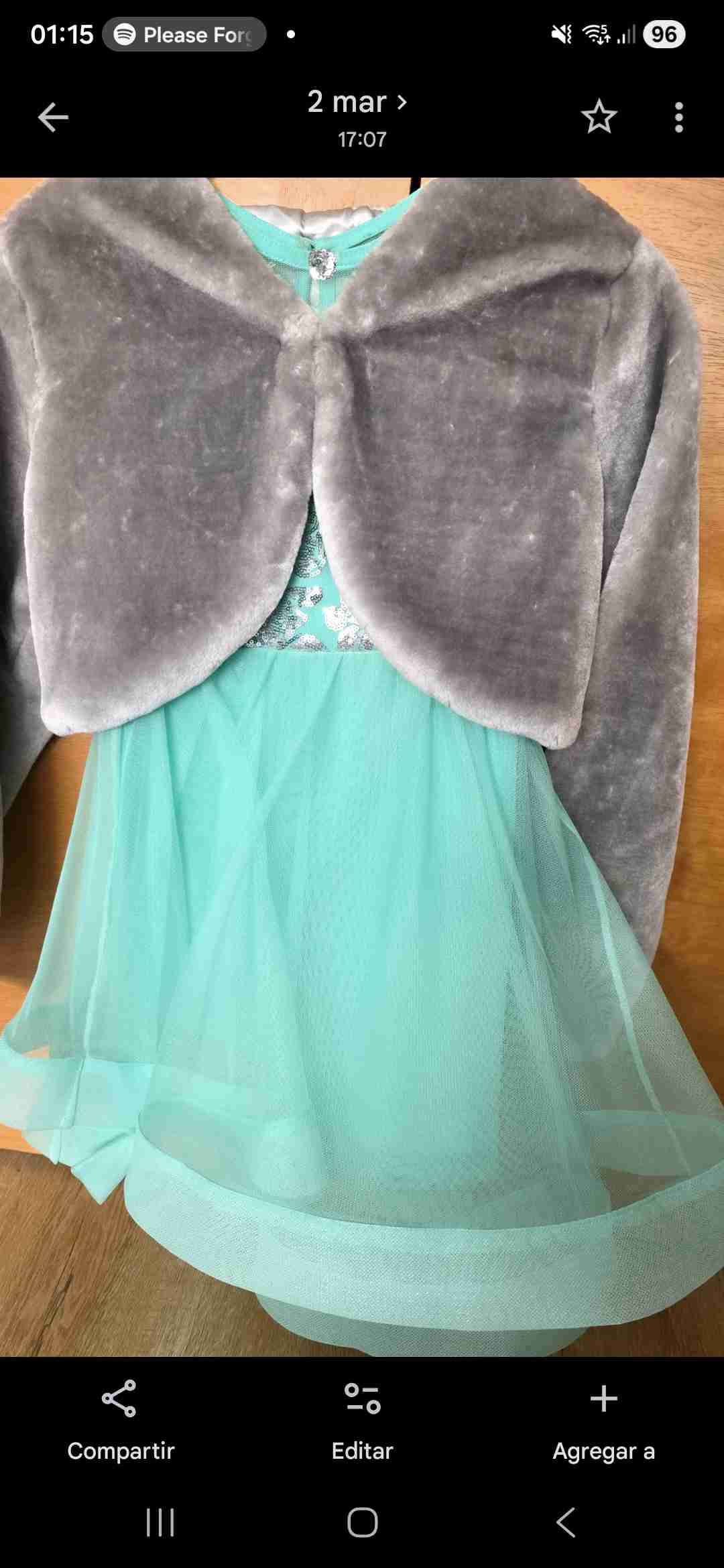 Elegante vestido verde con tul y detalles brillantes. Incluye bolero de peluche gris. Ideal para eventos especiales bat mitzva ,fiestas graduacion.