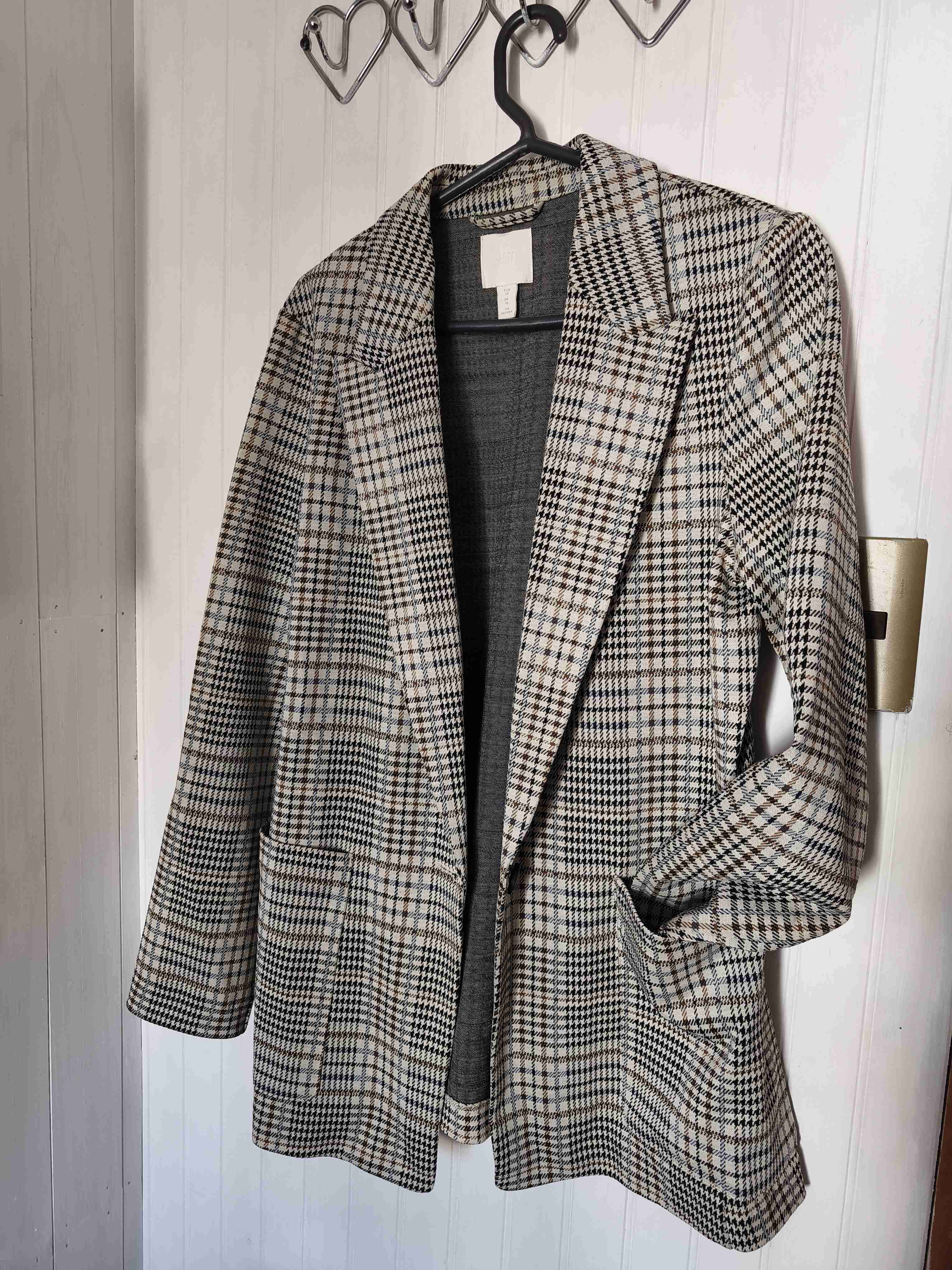 Blazer con patrón de cuadros, perfecto para un look elegante y formal. En buen estado, con leves signos de uso.