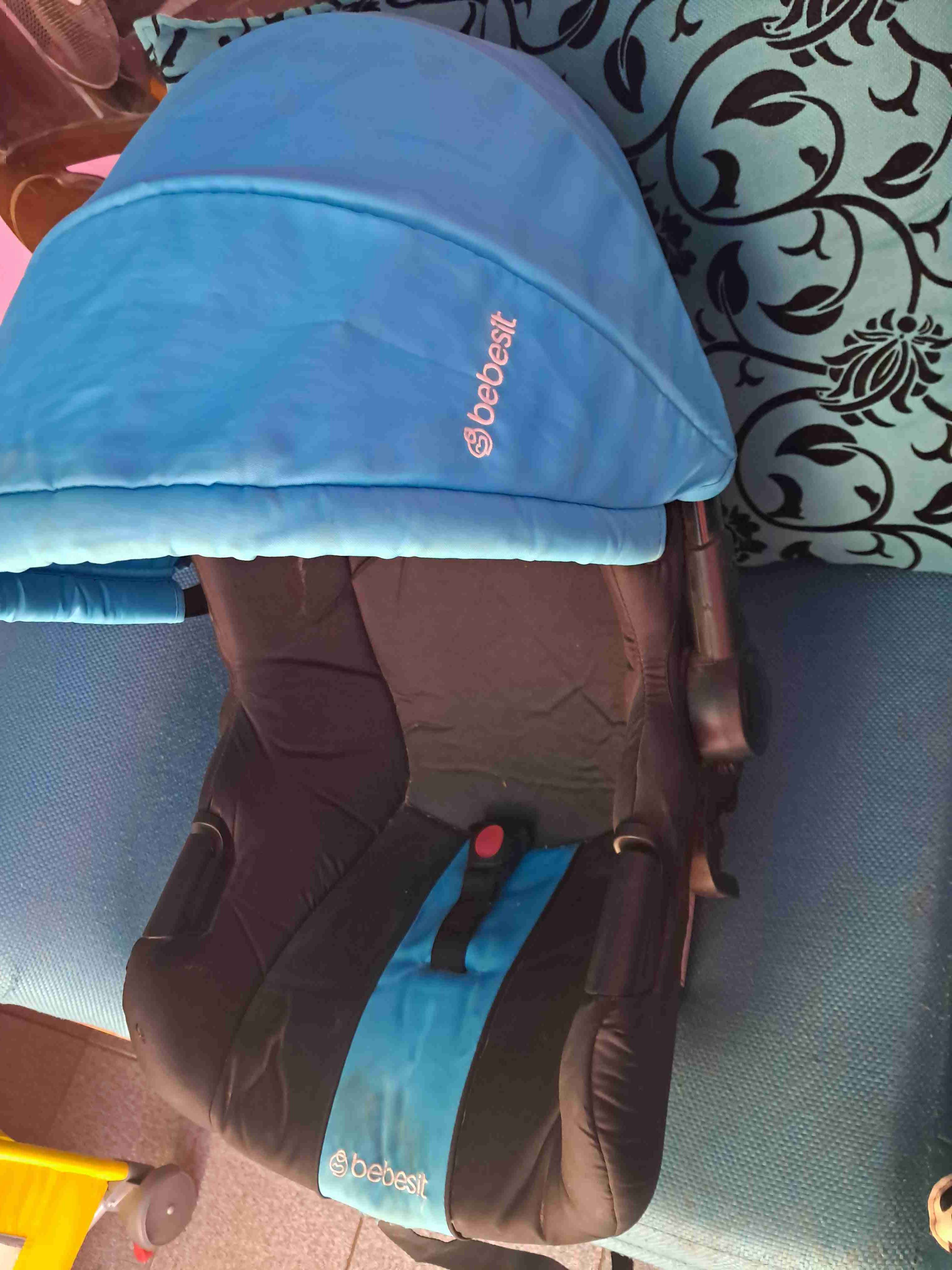 Silla de auto para bebé, color azul. En buen estado y cómodo para viajes.