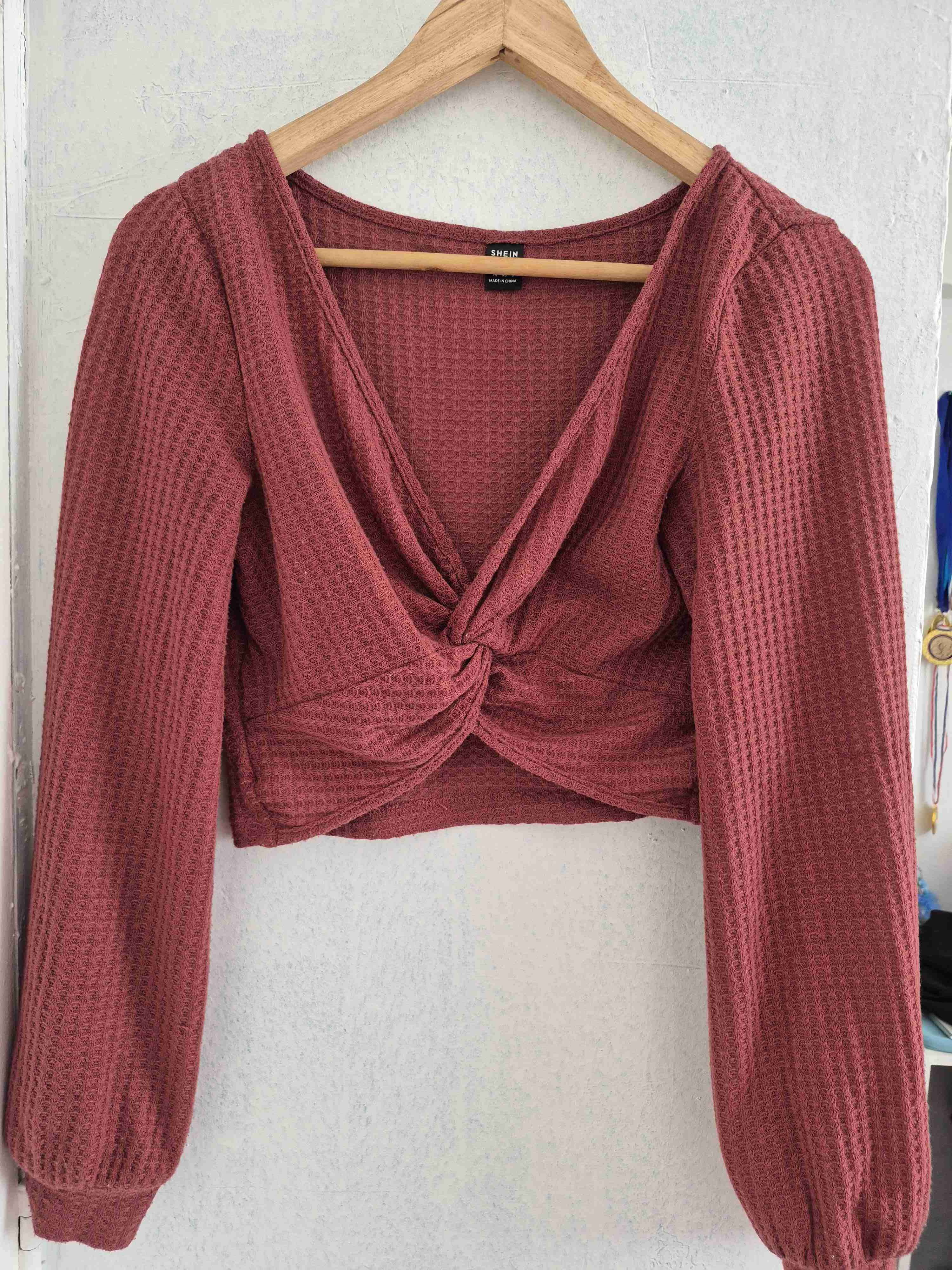 Top rojo cruzado, ideal para primavera. En buen estado, con textura acanalada.