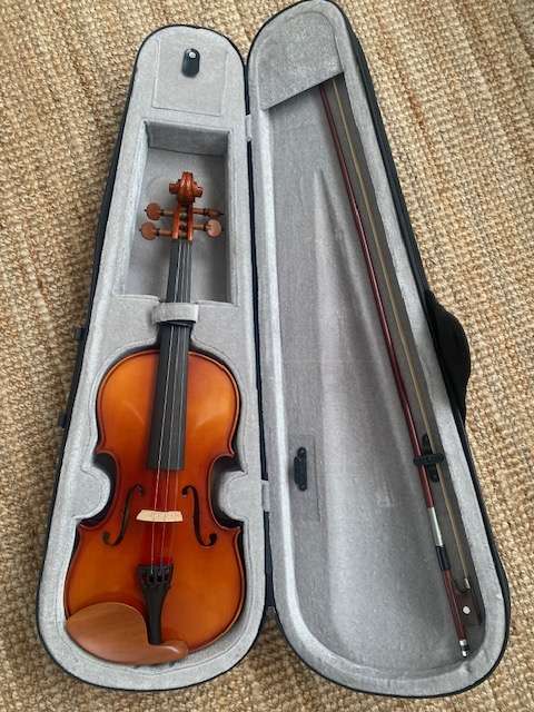 🎻 ViolĂn Etinger MA-310 4/4 + Estuche + Arco + Resina Se vende hermoso violĂn Etinger modelo MA-310, tamaño 4/4 (adulto), ideal para estudiantes o personas que quieran iniciarse en la mĂşsica 🎶 ✨ CaracterĂsticas: • Color madera natural barnizada (tono cafĂ© cálido, elegante) • Acabado ligeramente satinado • Tamaño estándar 4/4 • Buen sonido, ideal para aprendizaje 🎒 Incluye: • Estuche rĂgido • Arco • Resina (lista para usar) đź”§ Detalle: • Le falta una cuerda (repuesto econĂłmico y fácil de instalar) đź’ˇ Perfecto para: • Principiantes • Estudiantes • Regalo