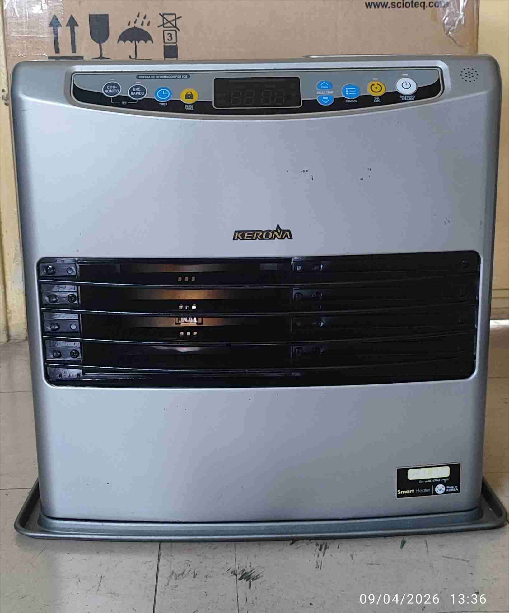 Estufa a parafina marca Kerona en buen estado, ideal para calentar espacios grandes. Uso sencillo y eficiente. Mantenimiento efectuado
