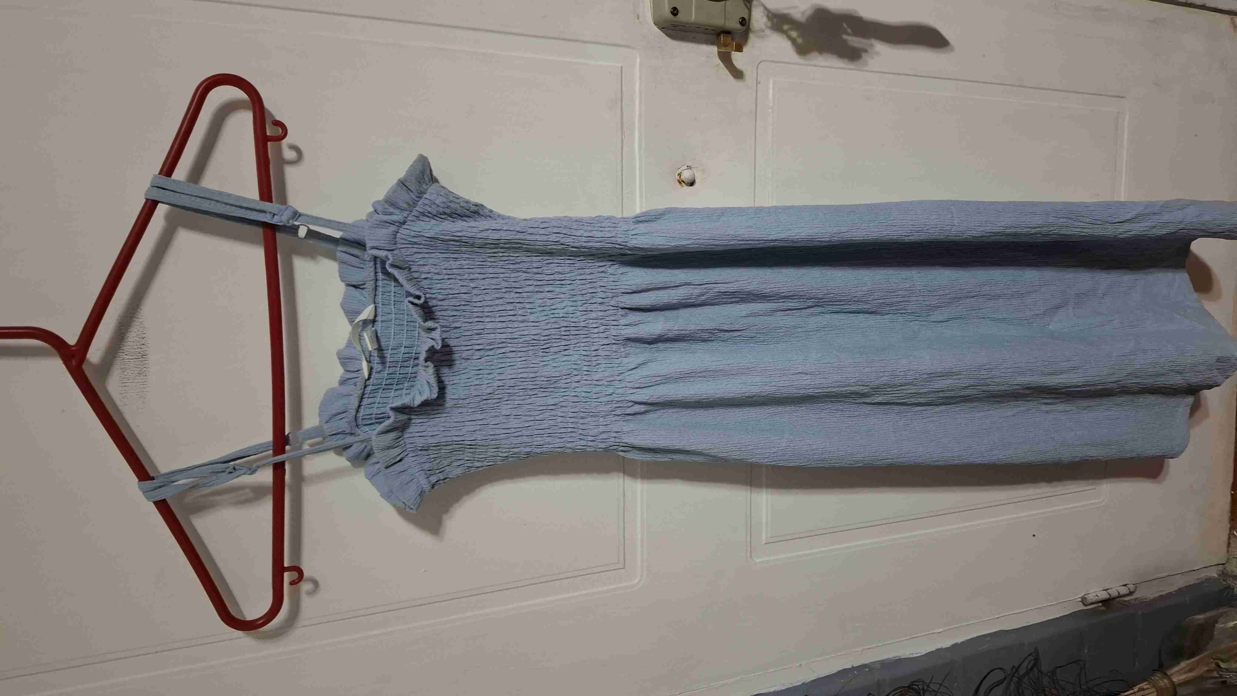Vestido azul h ym claro con tirantes y detalles fruncidos. Ideal para verano, en buen estado.
