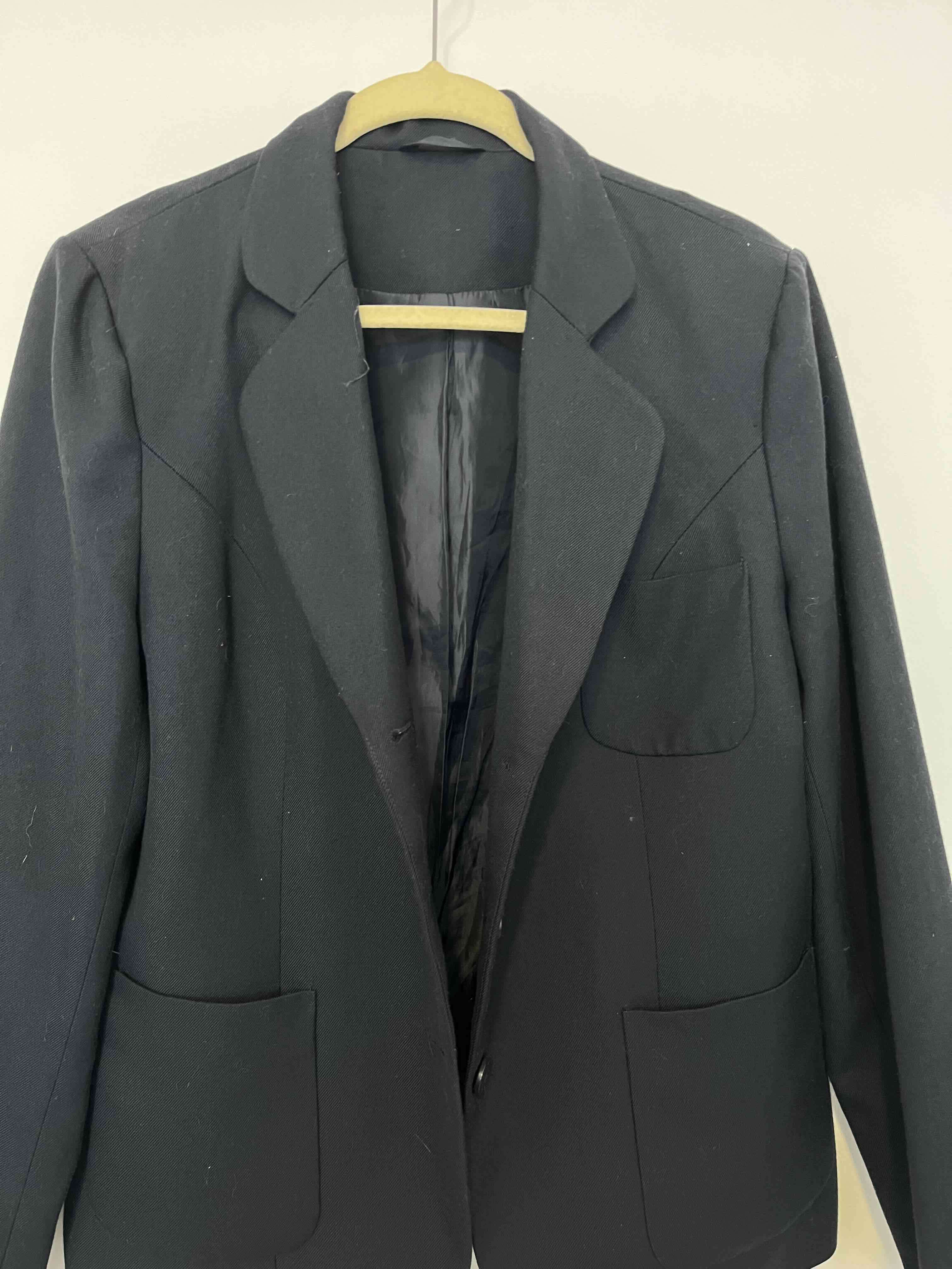 Blazer negro en buen estado, ideal para ocasiones formales. Presenta leves signos de uso.