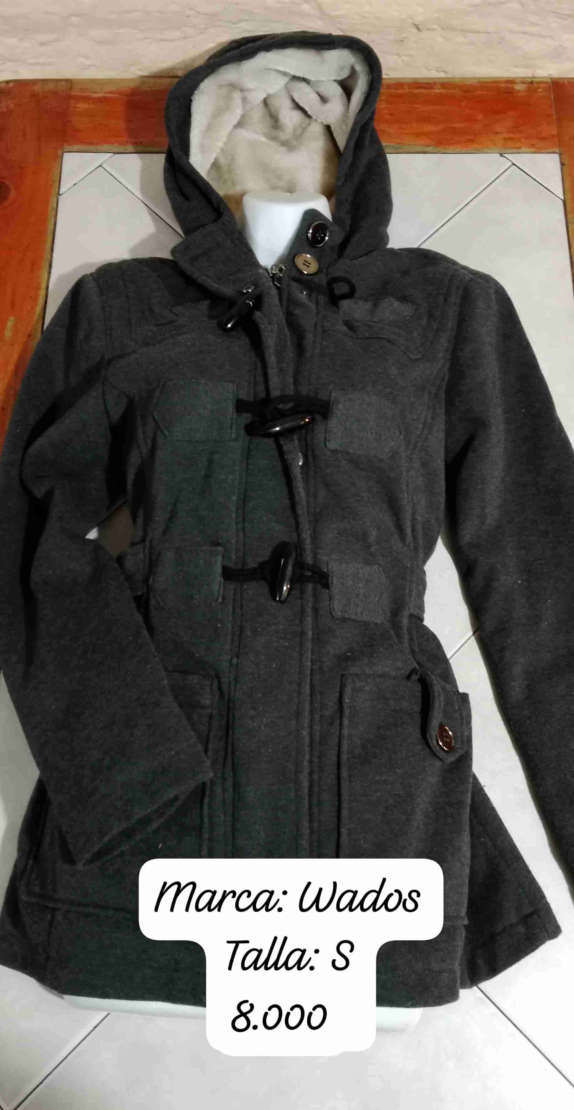 Abrigo de mujer con capucha y cierre de botones, color gris. Ideal para el invierno.