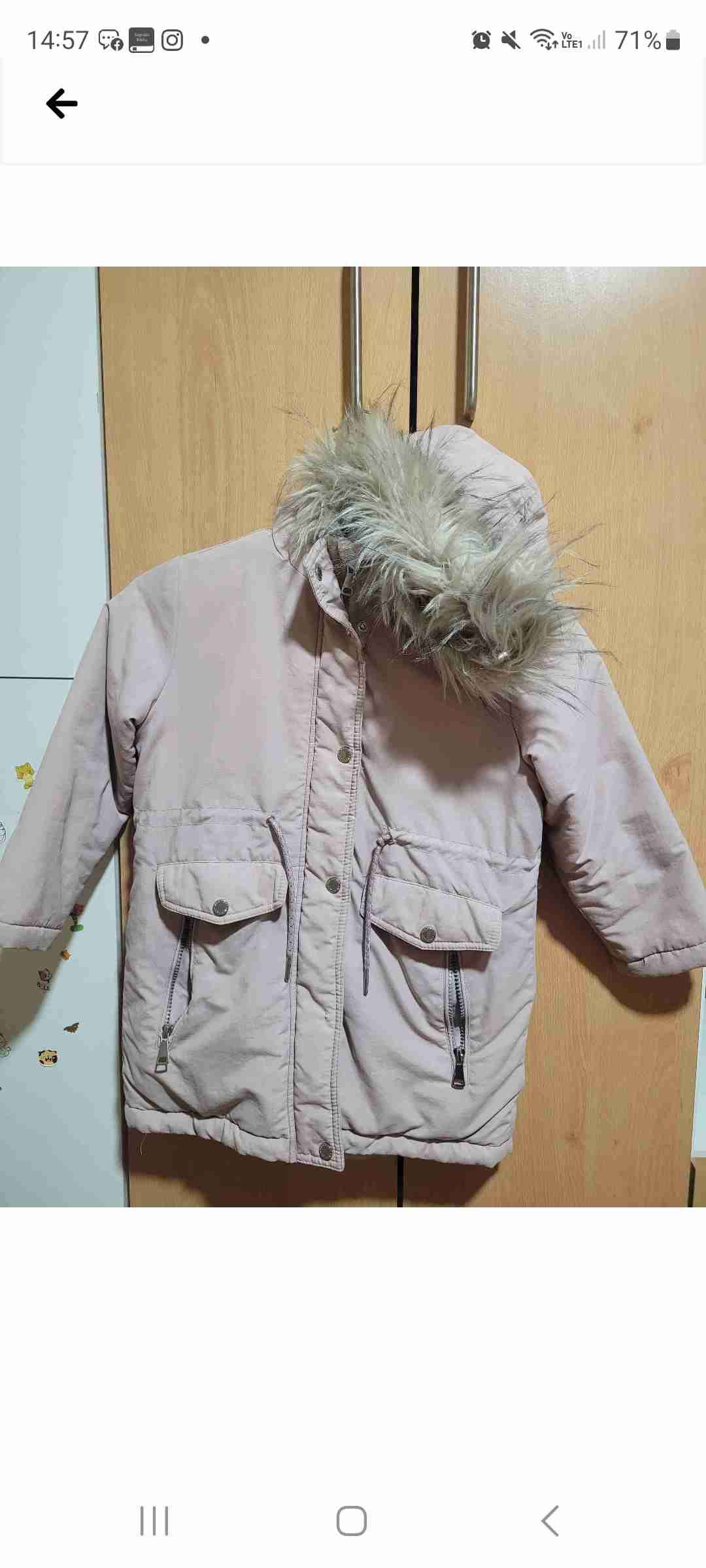 Chaqueta de invierno rosada con capucha de pelo sintético. Ideal para el frío, en buen estado general.