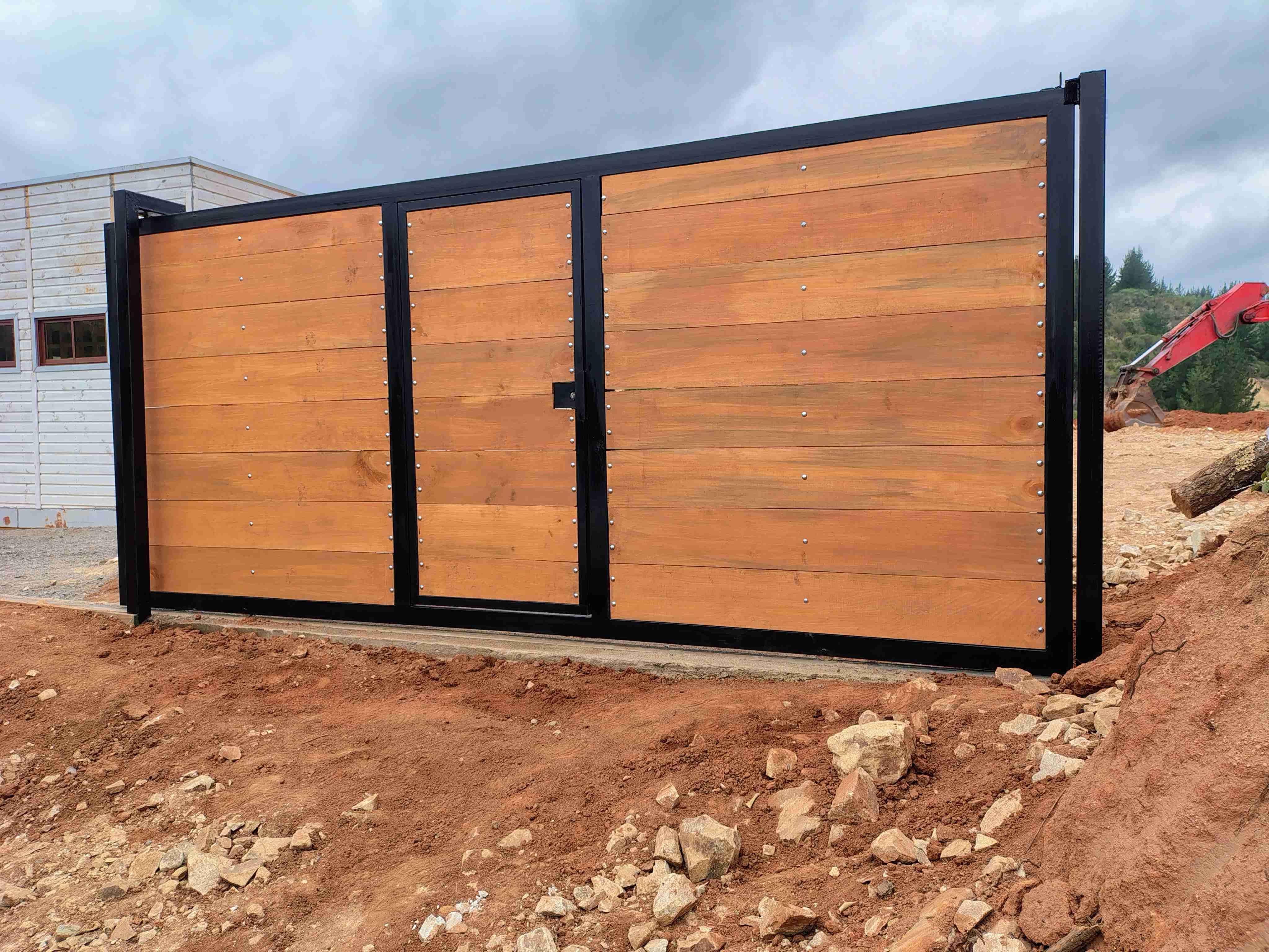 Portón robusto de madera con marco metálico, ideal para entradas de parcelas Se realizan solo a pedidos llame al nuestro fono +56958084080