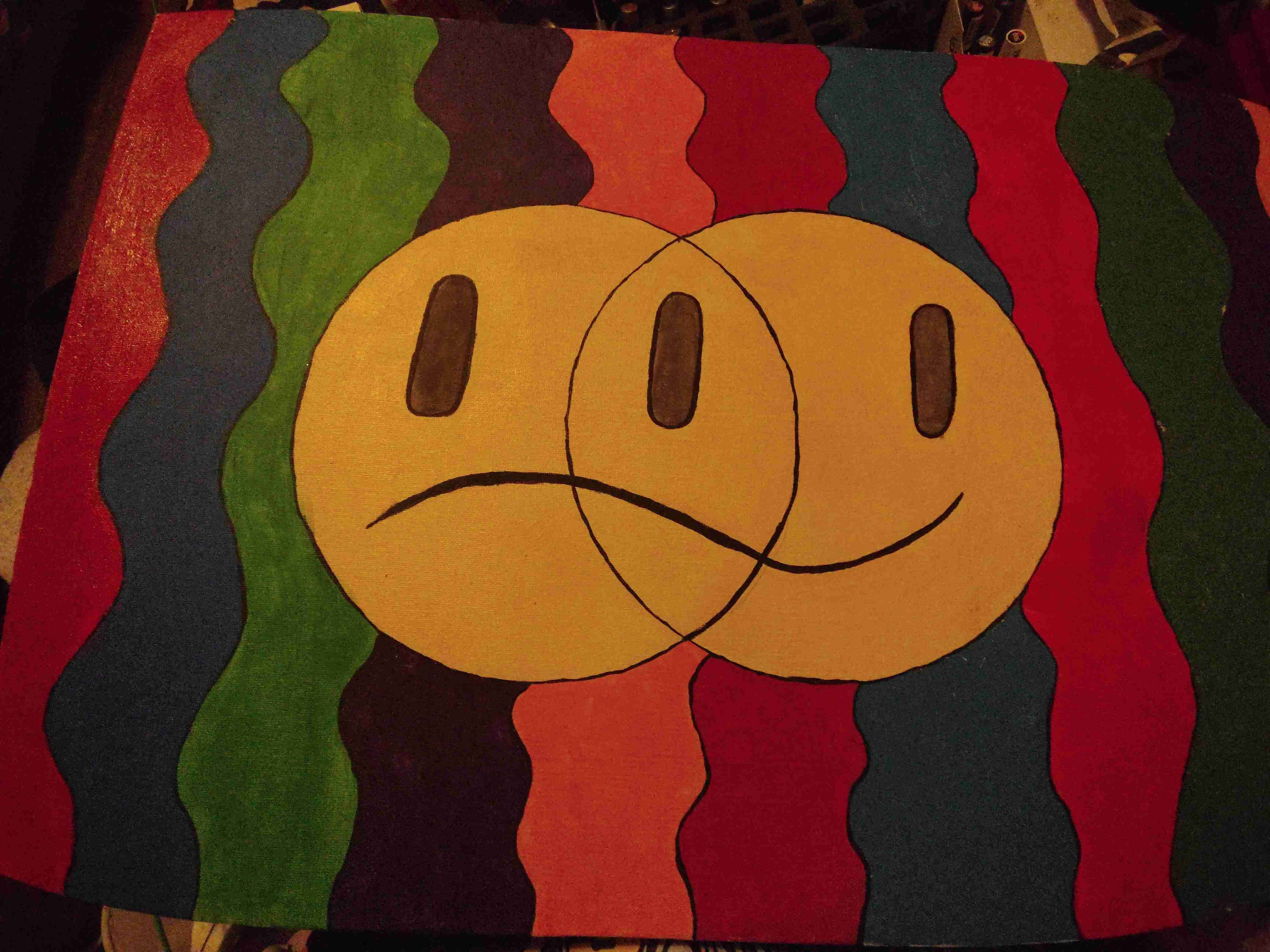 Cuadro con diseño colorido y contraste de emociones. Ideal para decoración moderna, bajo luces neones se ve psicodelico