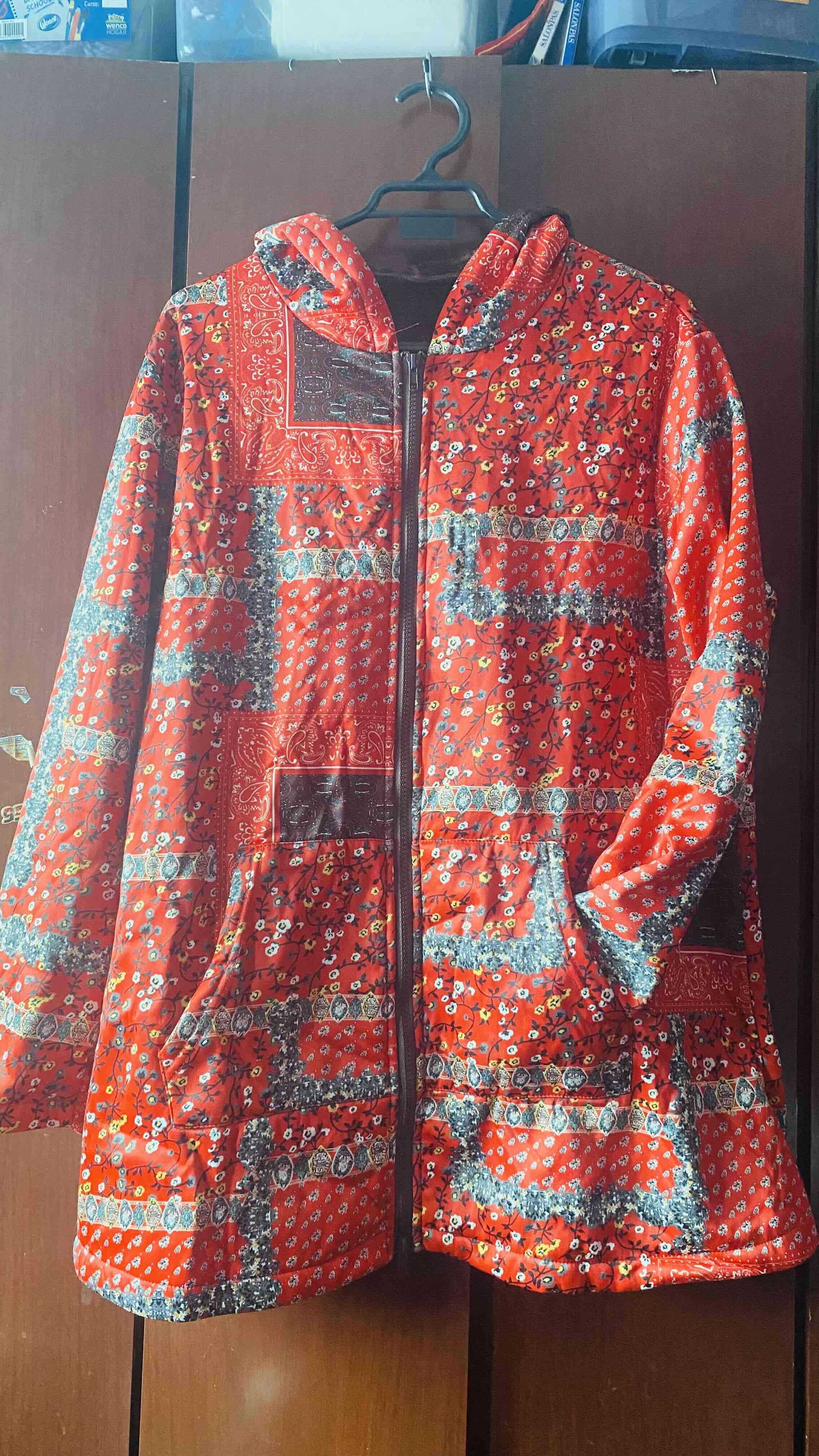 Abrigo cálido y acolchado con diseño floral. Perfecto para el invierno, en buen estado general. Ideal para un estilo informal y colorido.