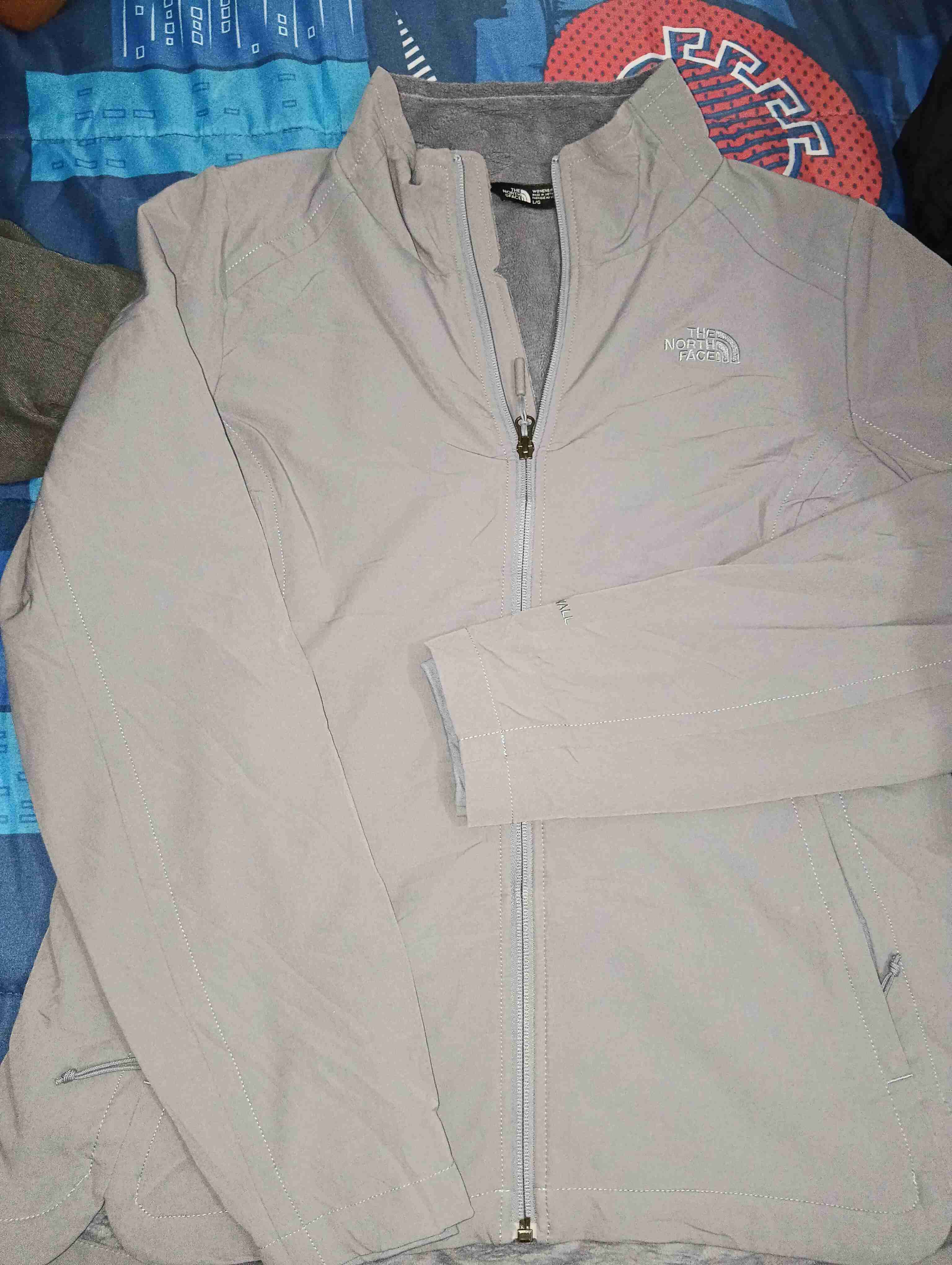 Chaqueta gris The North Face para mujer, ideal para el frío. En buen estado, perfecta para exteriores.