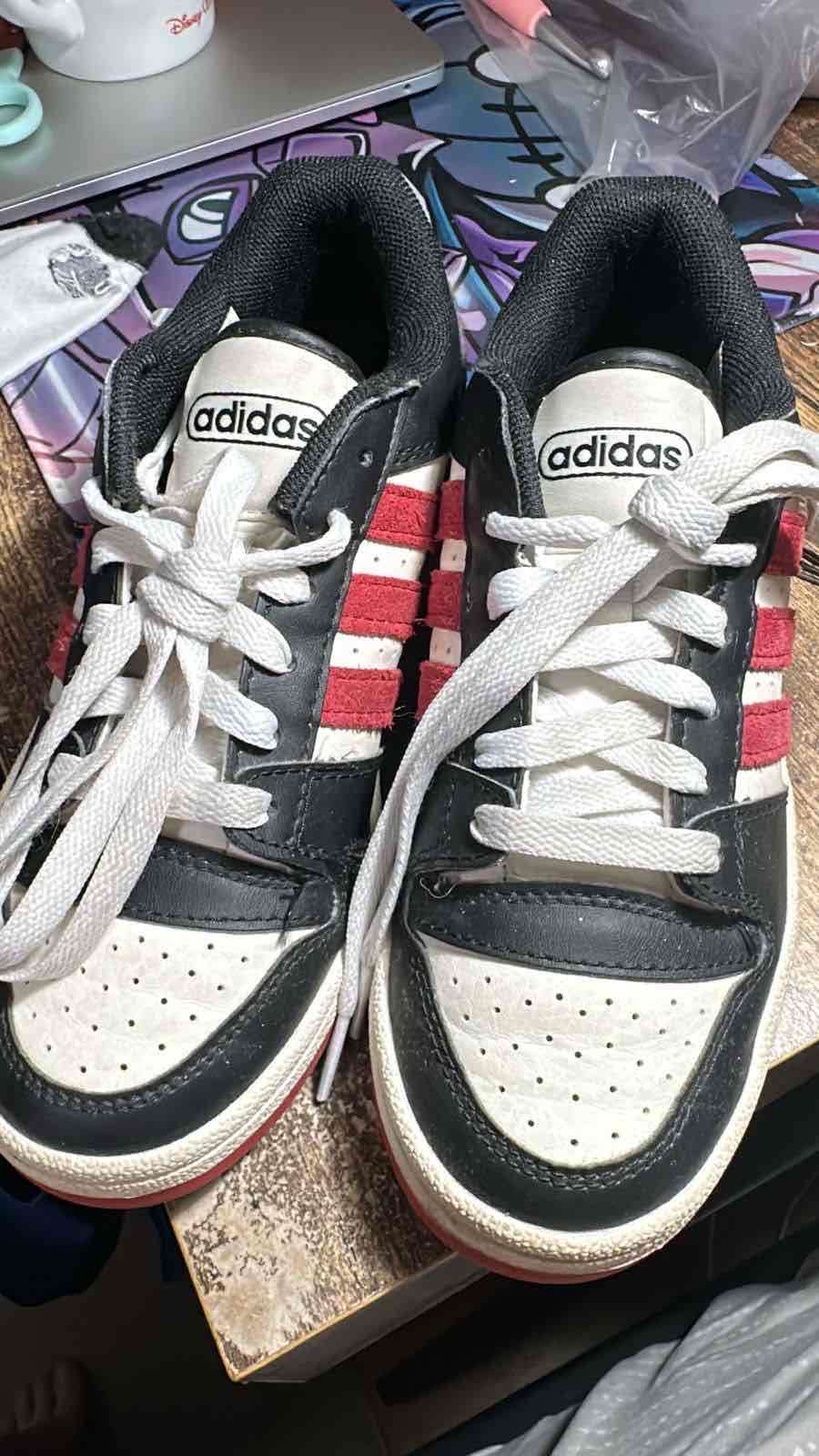 Zapatillas Adidas de color negro con detalles rojos y blancos. En buen estado, ideales para uso casual.