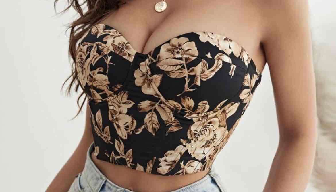 Elegante top tipo corset con diseño floral, ideal para salidas nocturnas. En buen estado.