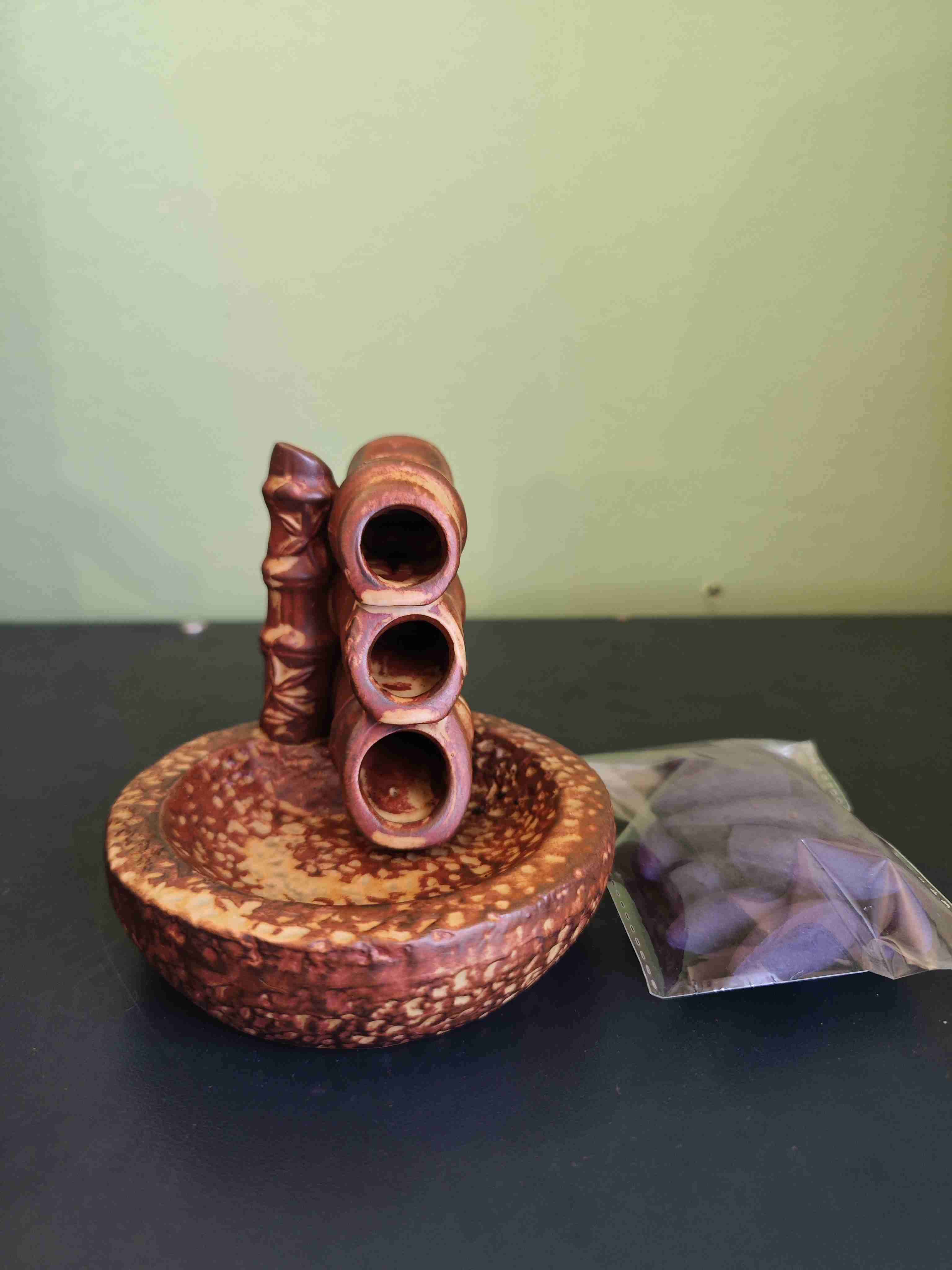 Bonito quemador de incienso de cerámica estilo rústico. Ideal para crear un ambiente relajante en el hogar. Incluye inciensos.