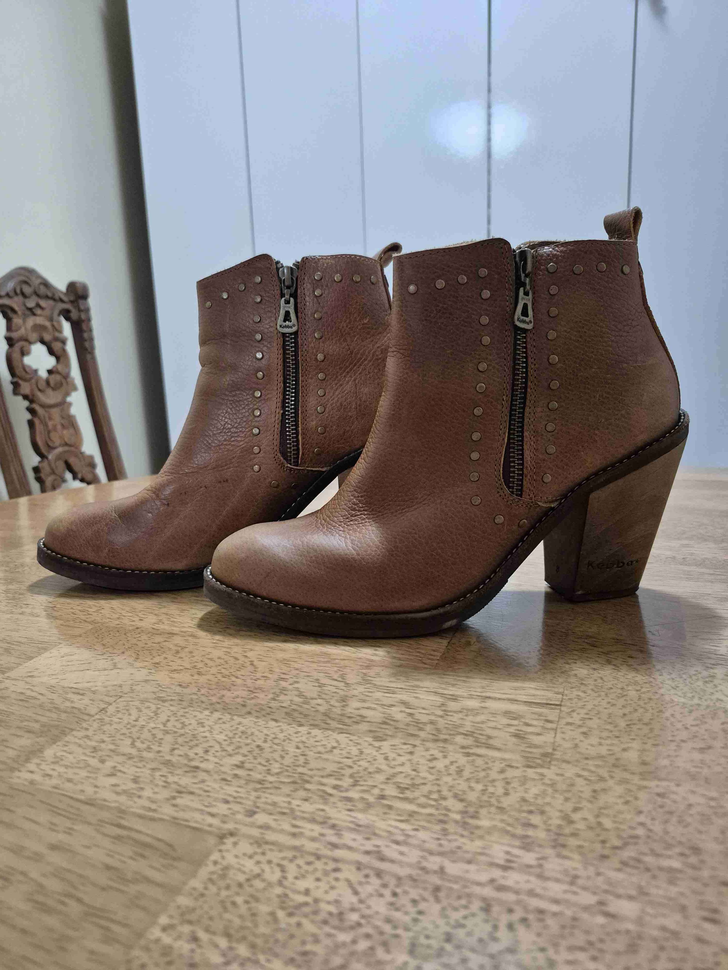 Botines de cuero marrón con cierre lateral y detalles de tachas. En buen estado, perfectos para uso casual.