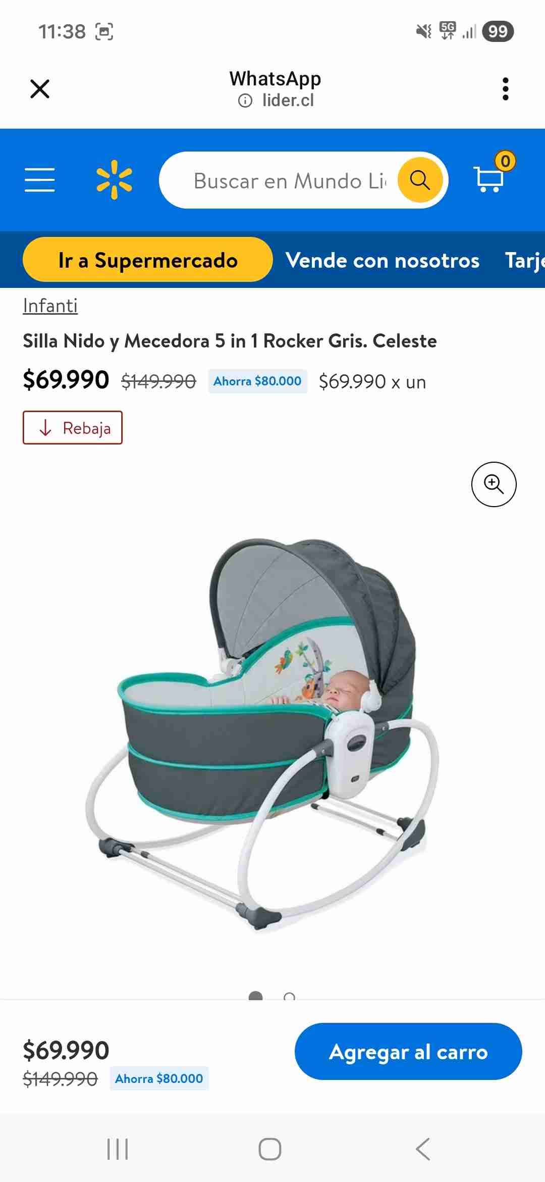 Silla nido 5 en 1 con mecedora, ideal para bebés. Color gris y celeste, perfecto para el hogar. Nueva en caja ya que me regalaron otra y no alcance a cancelar este pedido precio oferta