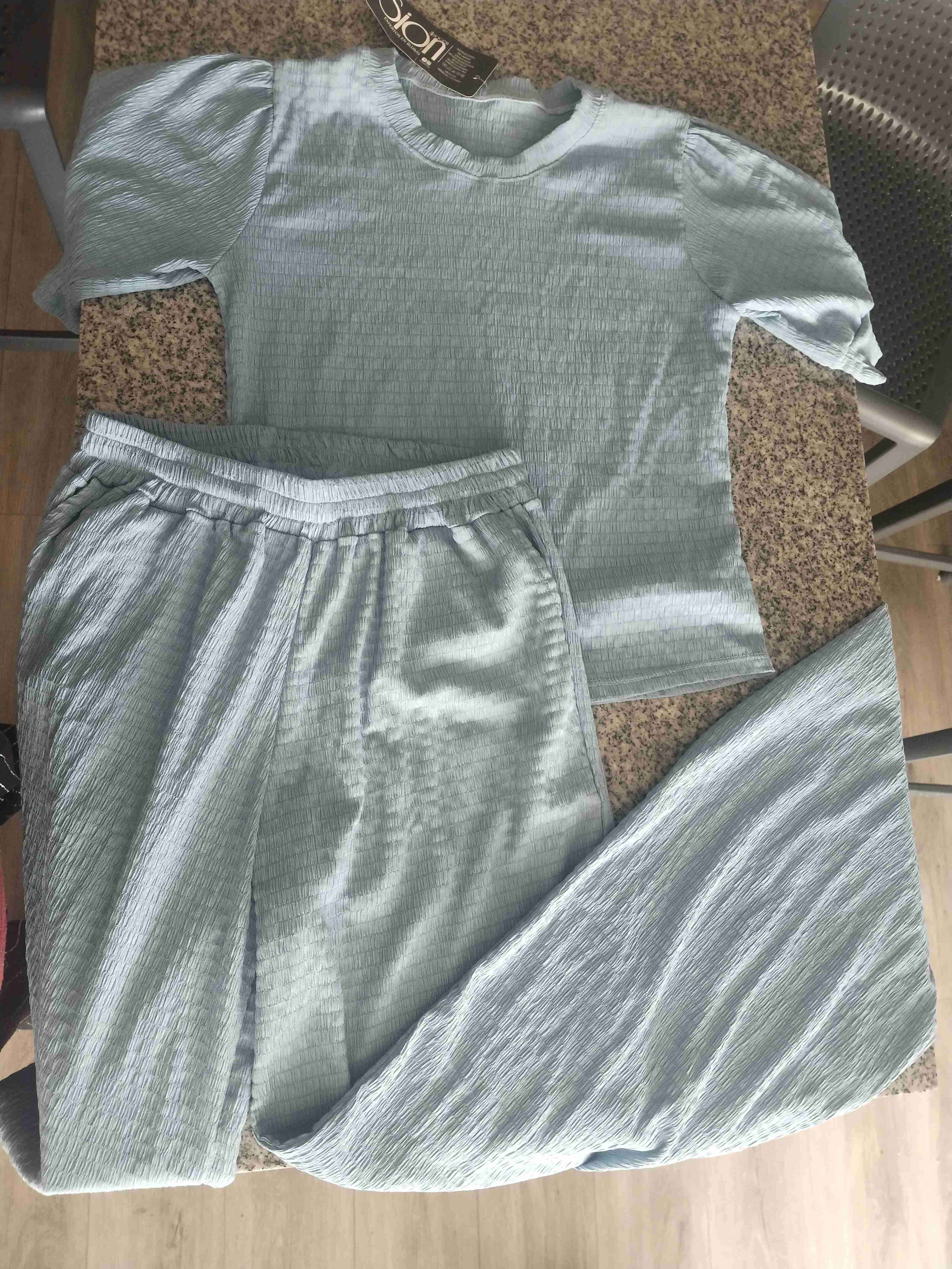 Conjunto cómodo de polera y pantalón, color celeste. Ideal para uso diario o salir con estilo relajado. Fabricado en Medellín Colombia Tela de excelente calidad Sirve para talla M y L