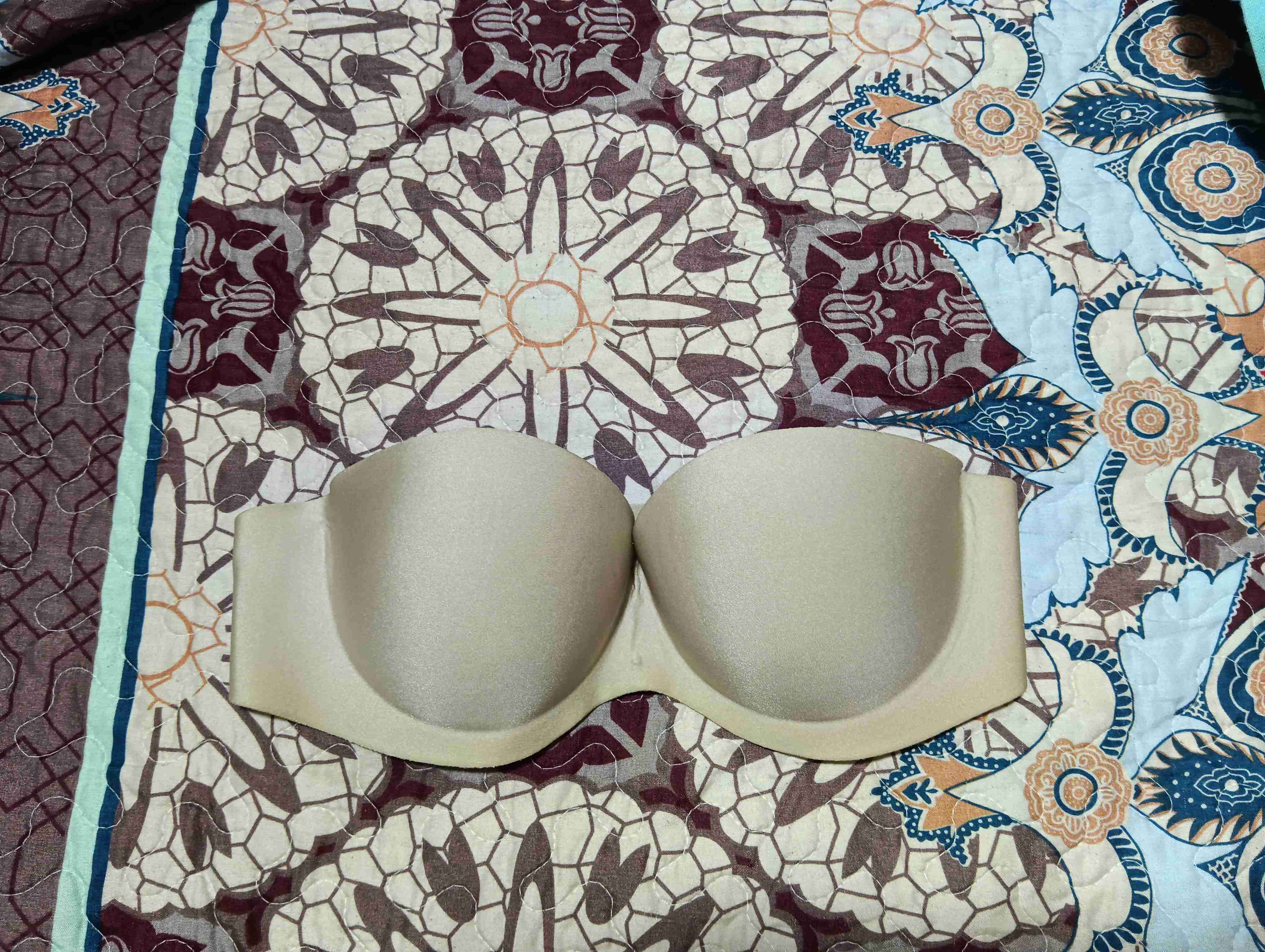 Sostén strapless beige en buen estado, ideal para ropa sin tirantes. Cómodo y elegante.