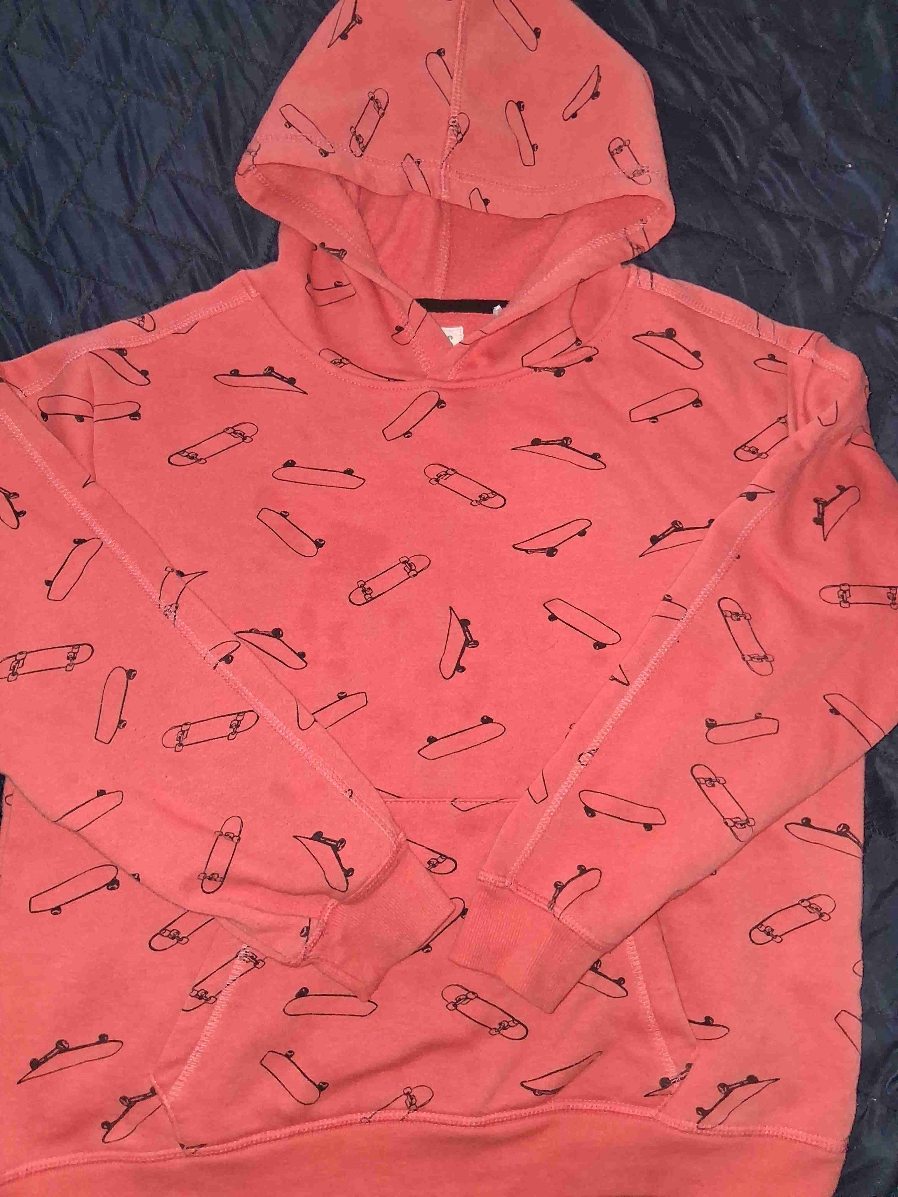 Cómodo polerón con capucha y estampado de skateboards, en buen estado. Perfecto para días casuales.