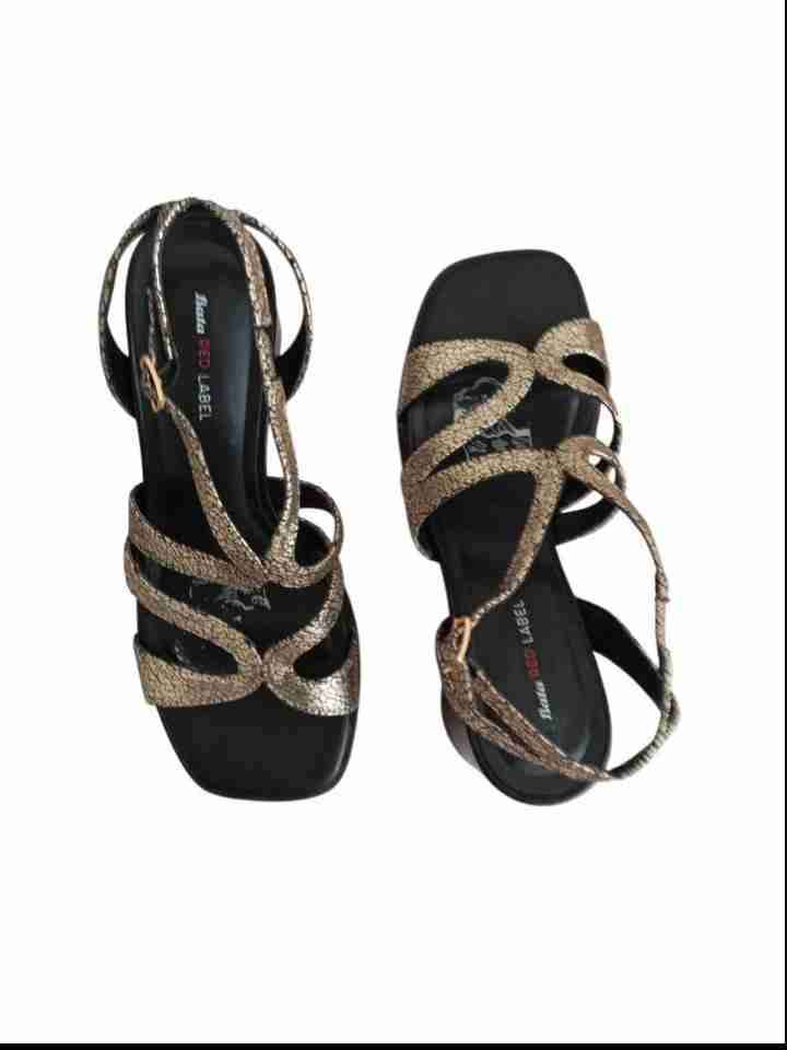 Elegantes sandalias doradas para ocasiones especiales. En buen estado general, ideales para complementar tu look.