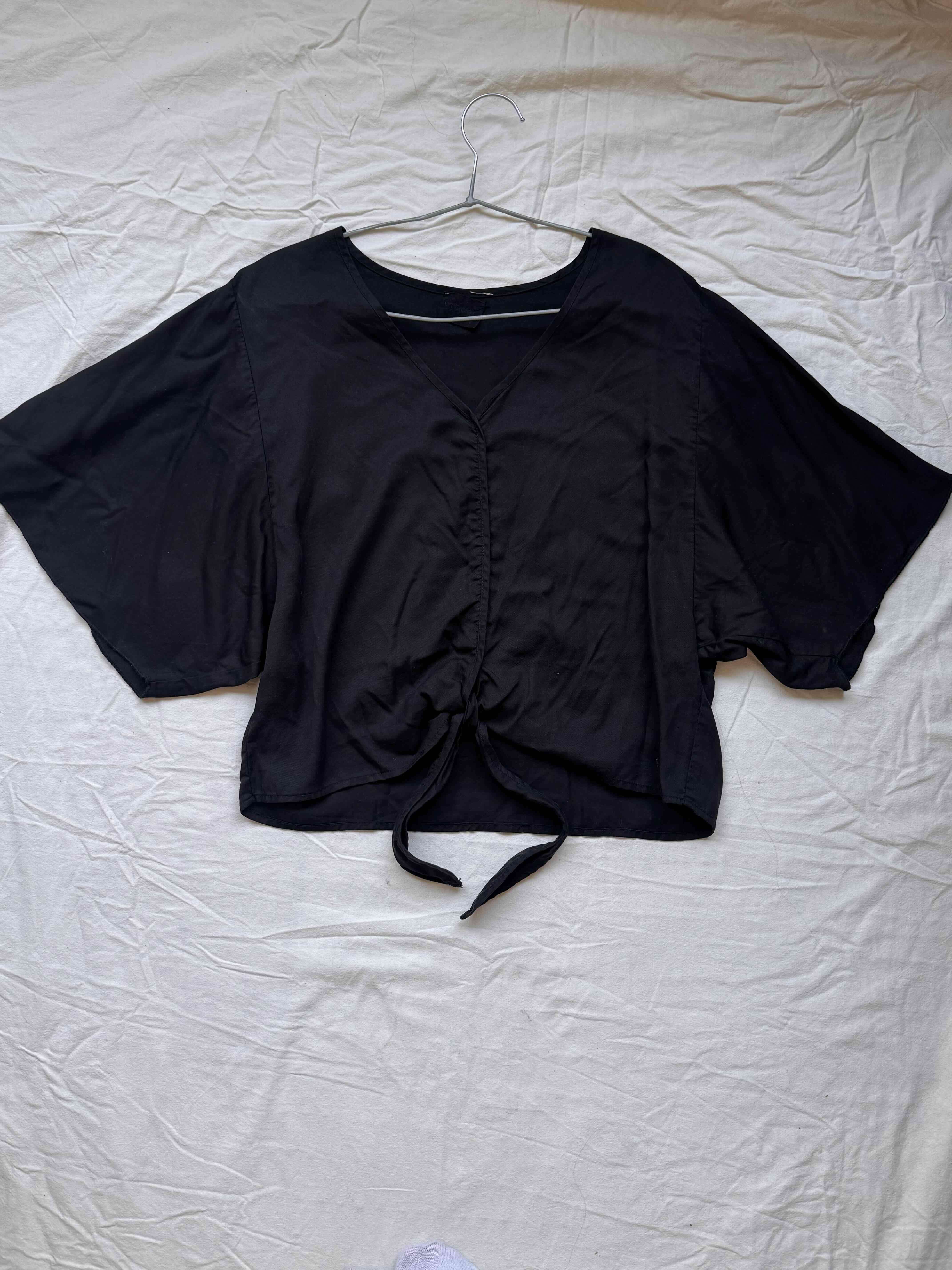 Polera negra manga corta estilo murcielago