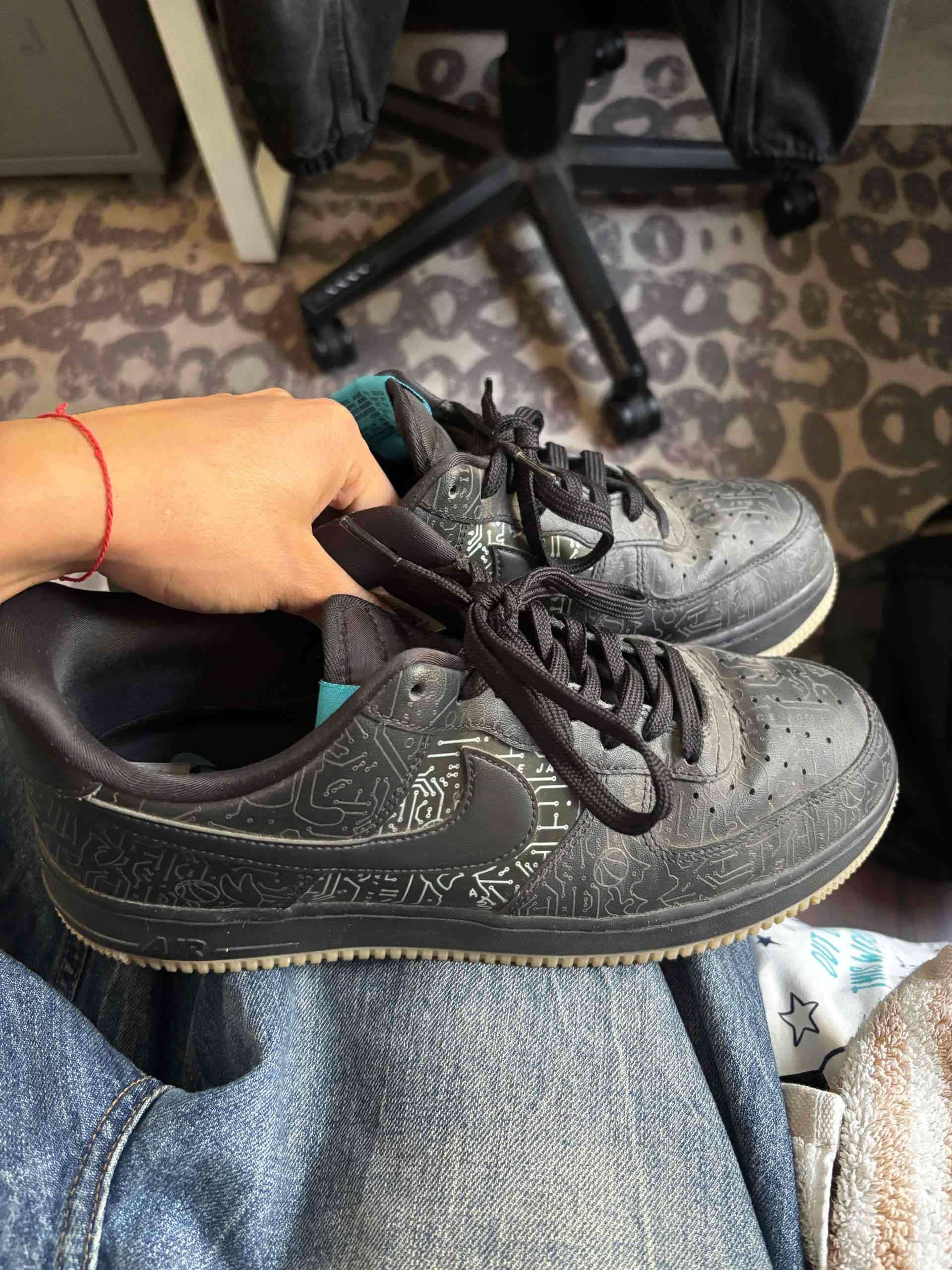 Zapatillas deportivas negras con diseño gráfico llamativo. Están en buen estado, perfectas para el uso diario.