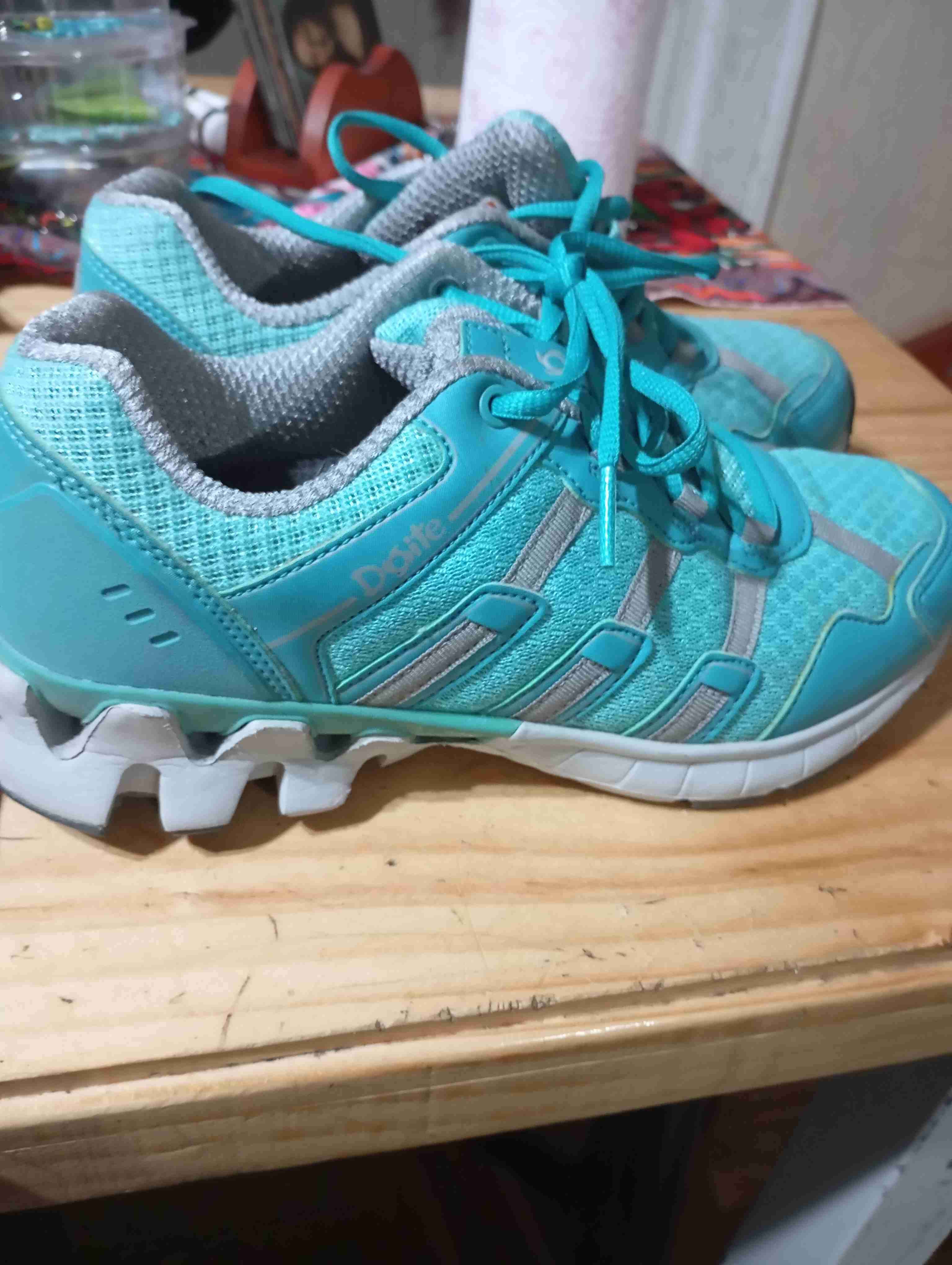 Zapatillas deporte color turquesa, en buen estado. Ideales para actividades físicas.