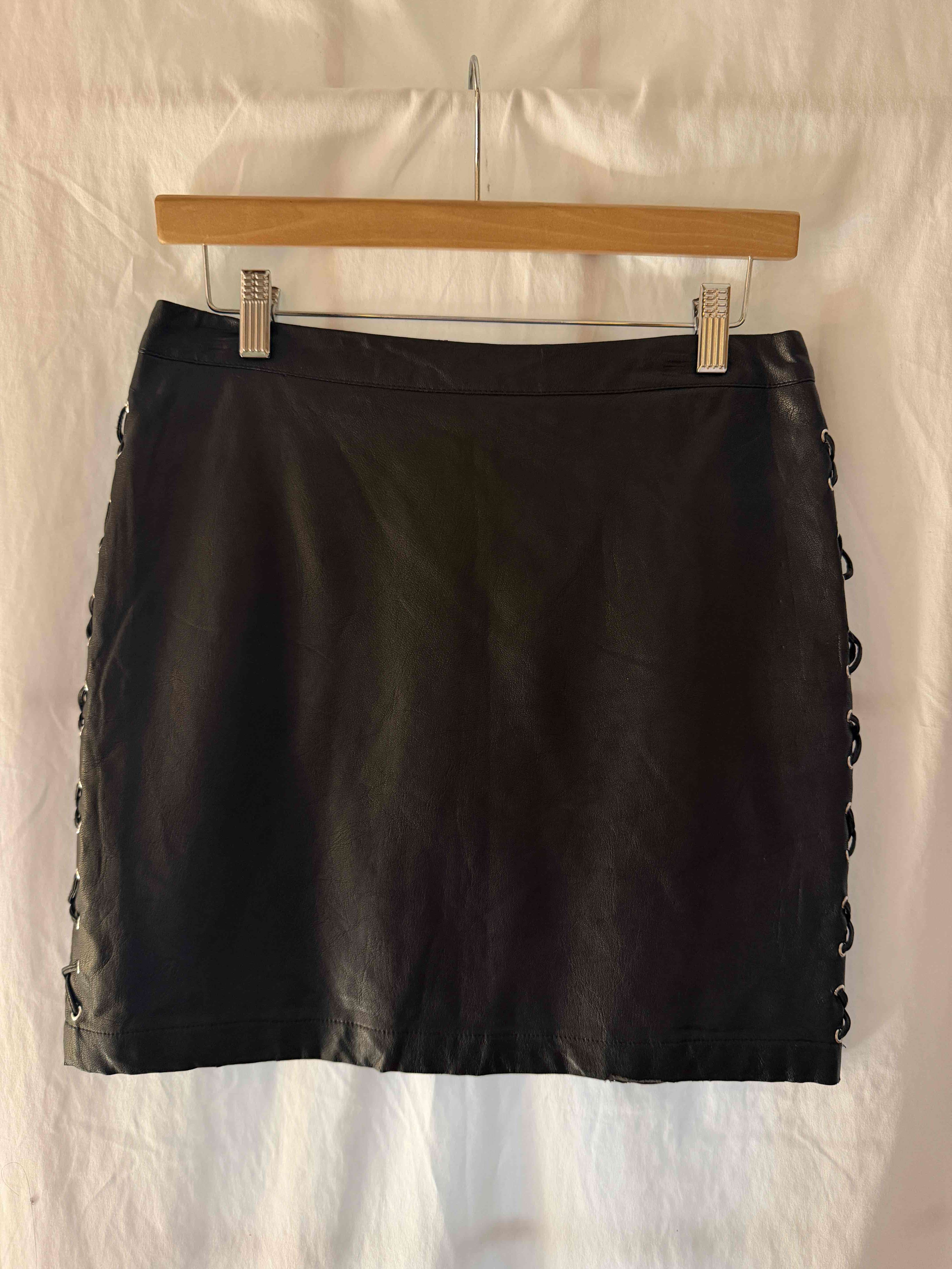 Falda mini negra con detalles de amarre a los costados. Ideal para salidas nocturnas.