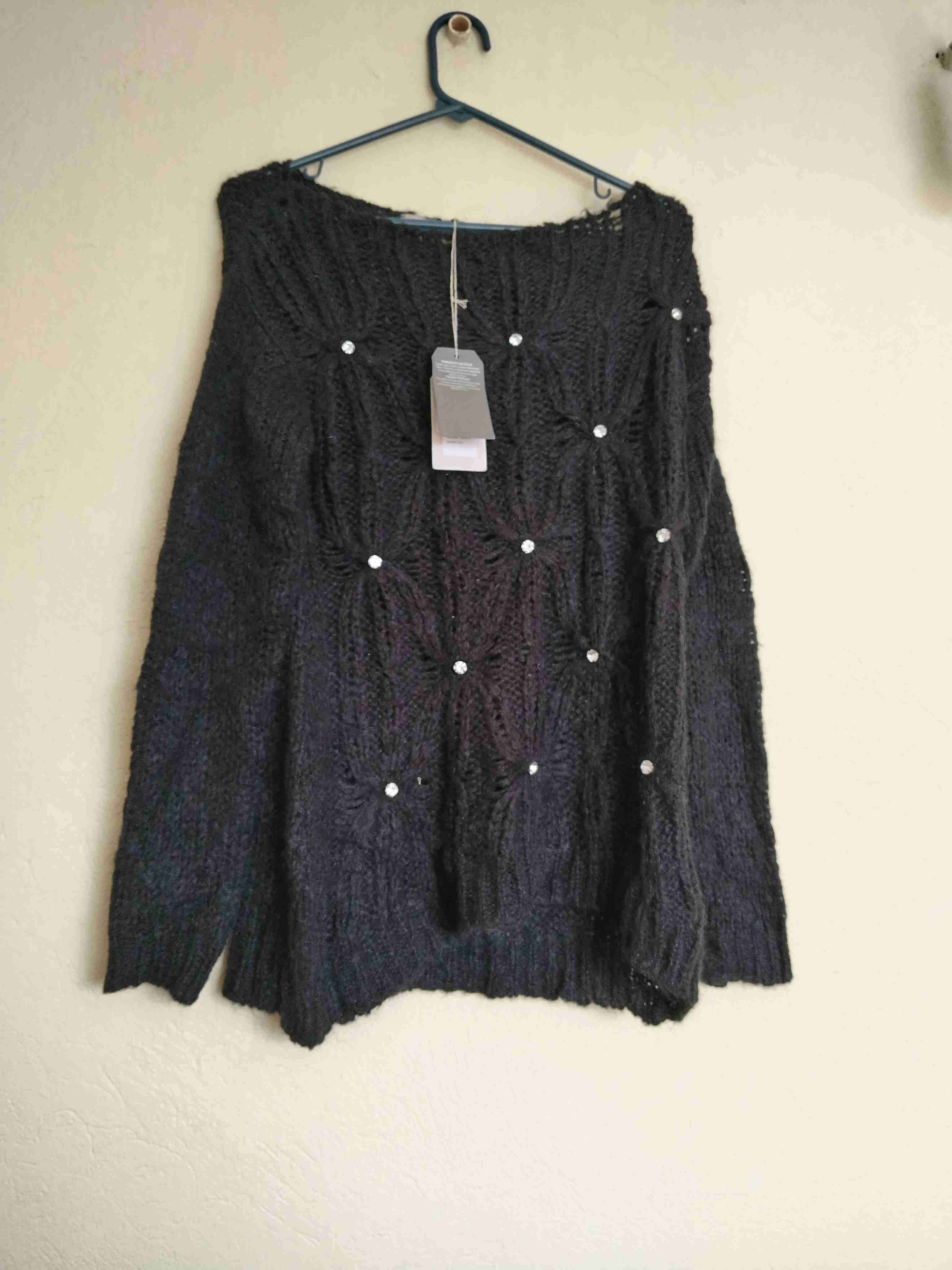 Suéter de lana negro con detalles de perlas. Elegante y abrigador para el invierno.