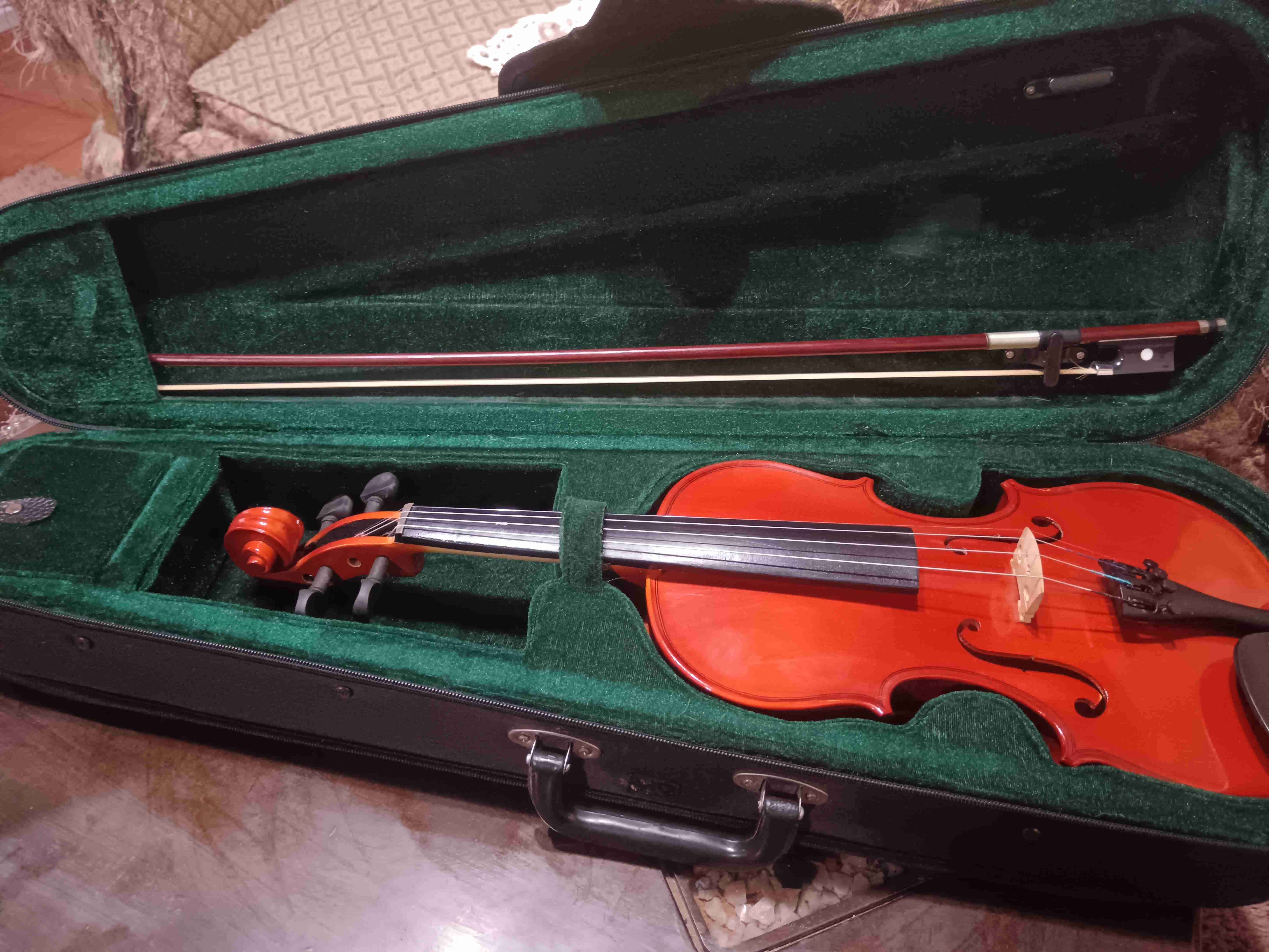 Violín 3/4 en buen estado con estuche, precastilla y arco, ideal para estudiantes o músicos intermedios.