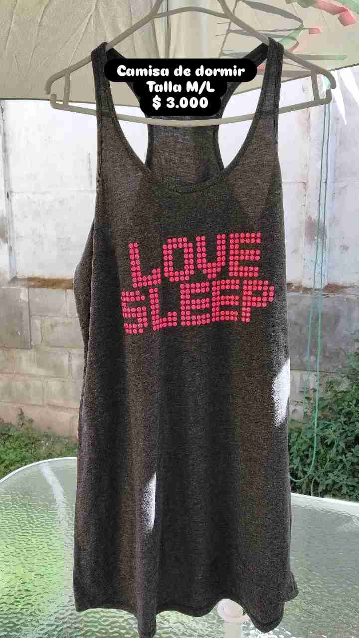 Camisa de dormir negra con estampado 'Love Sleep' en rosado. Ideal para descansar cómodamente. En buen estado general.