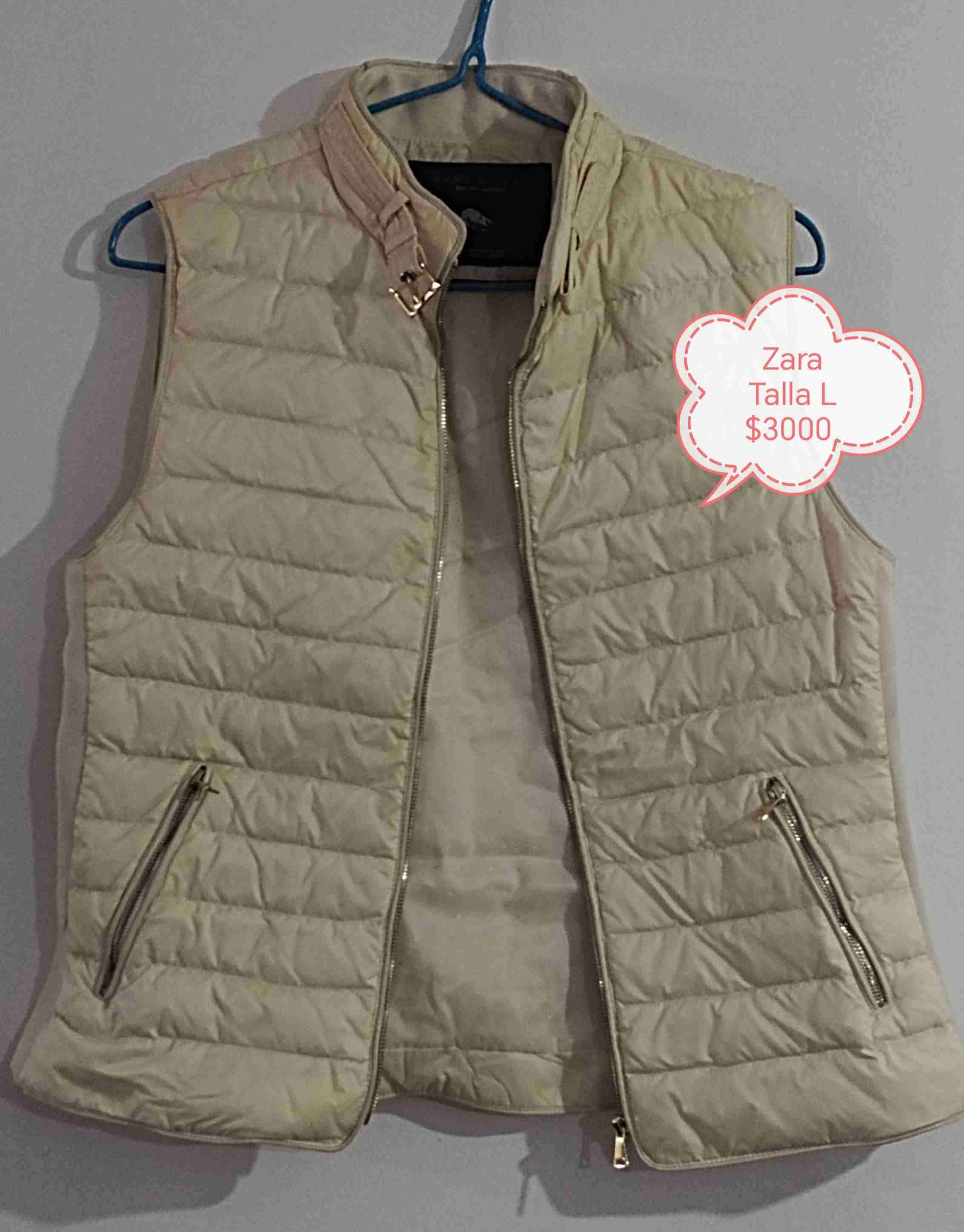 Chaleco sin mangas beige de Zara, ideal para días frescos. Talla L, en buen estado.