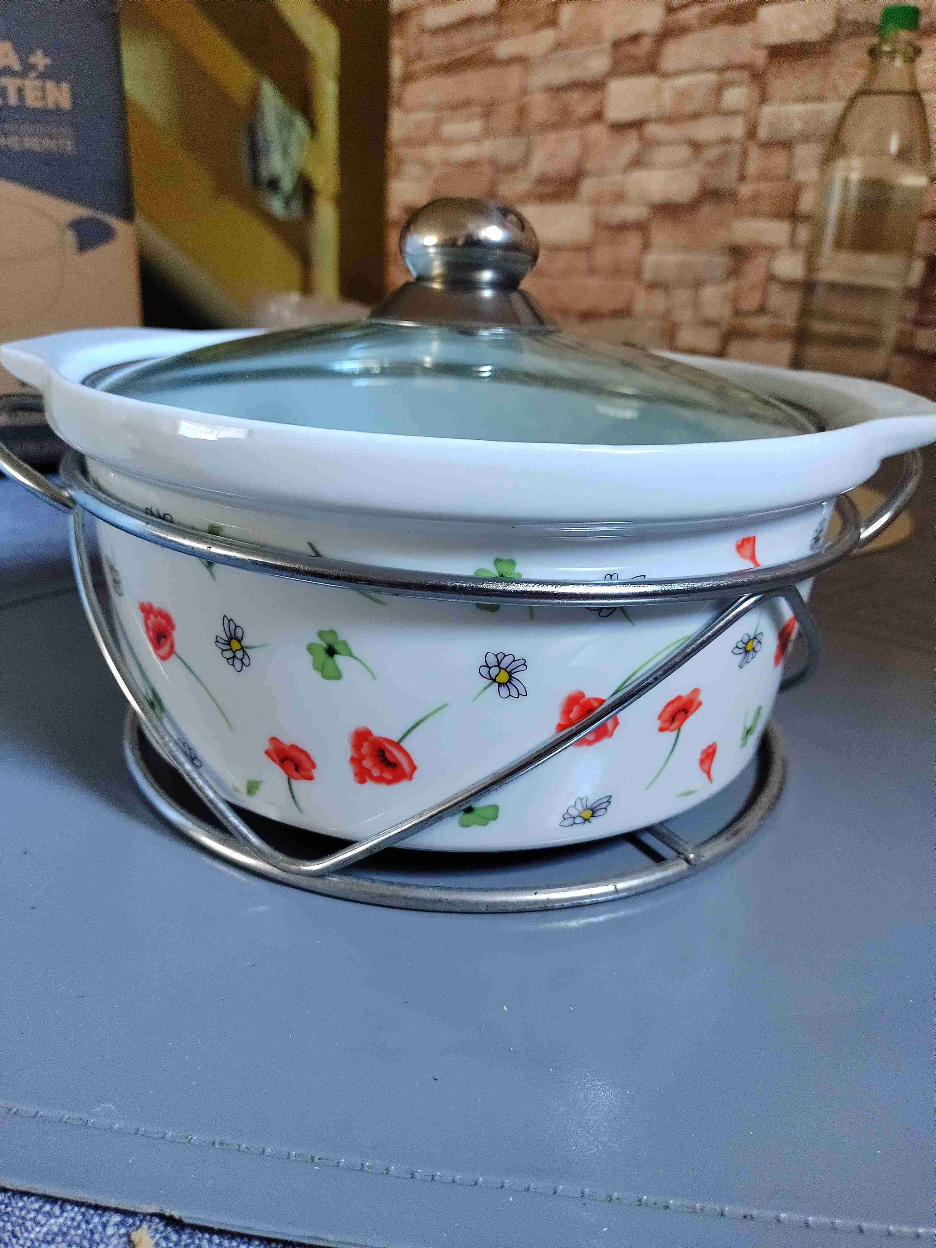 Olla esmaltada con estampado floral