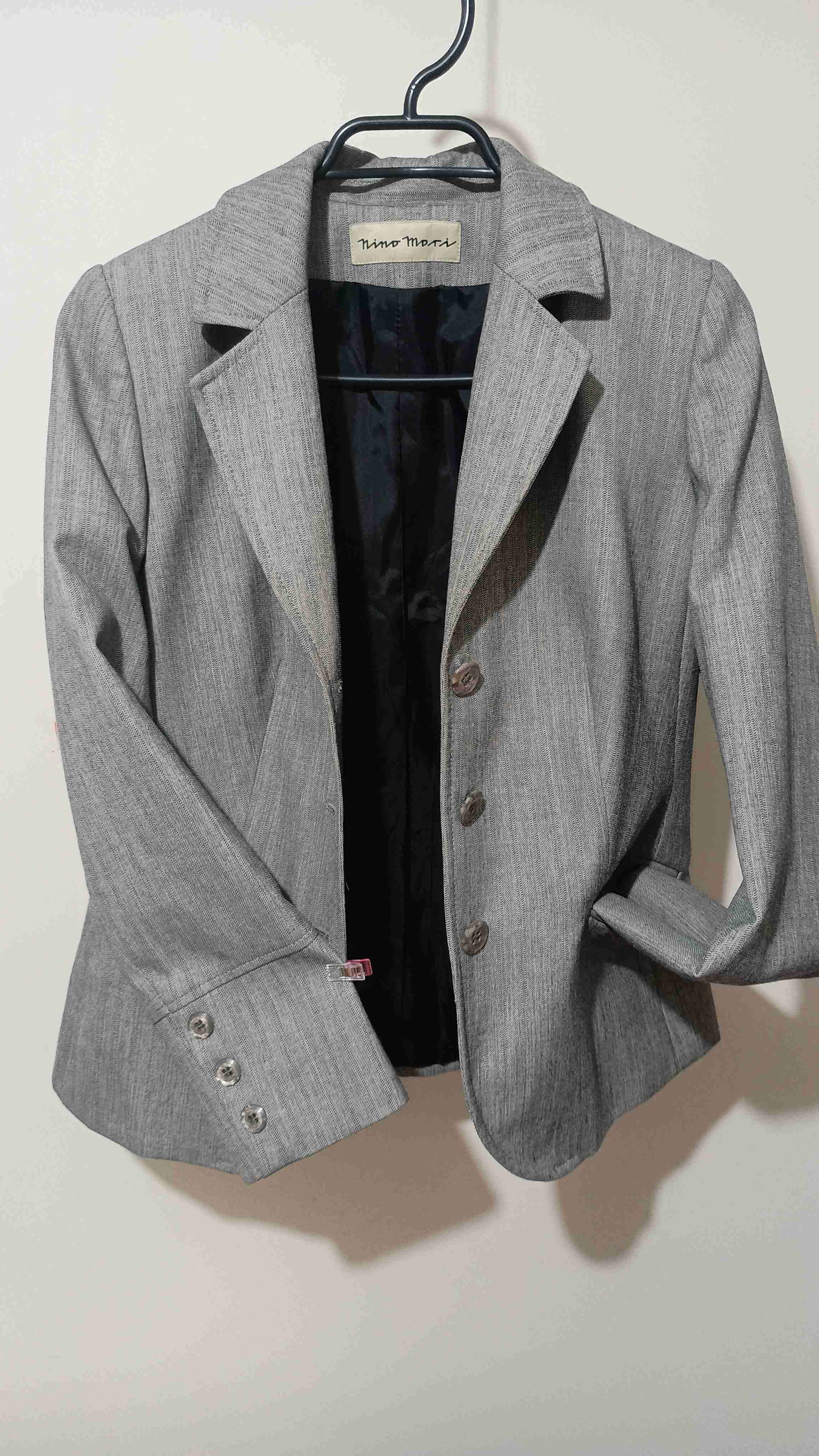Blazer gris de estilo formal, ideal para oficina. En buen estado, diseño clásico con botones.talla 38