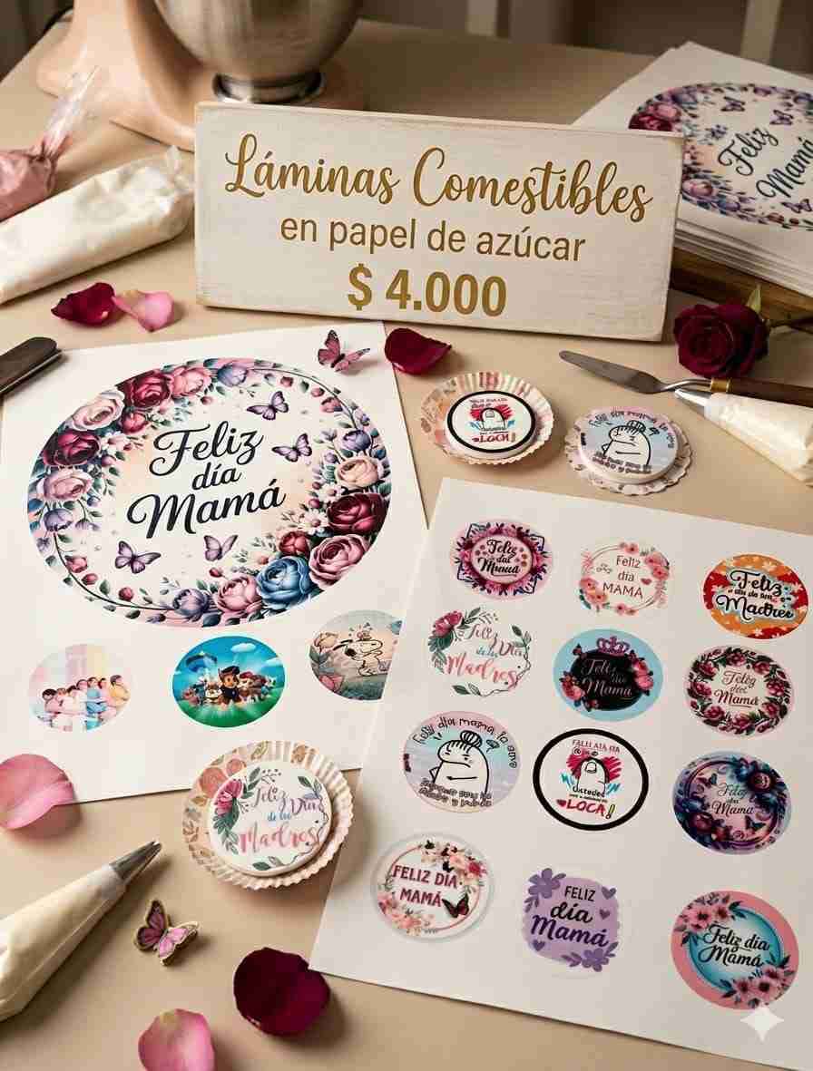 Hermosas láminas de papel de azúcar para decorar tus tortas en el Día de la Madre. Ideales para personalizar tus postres.