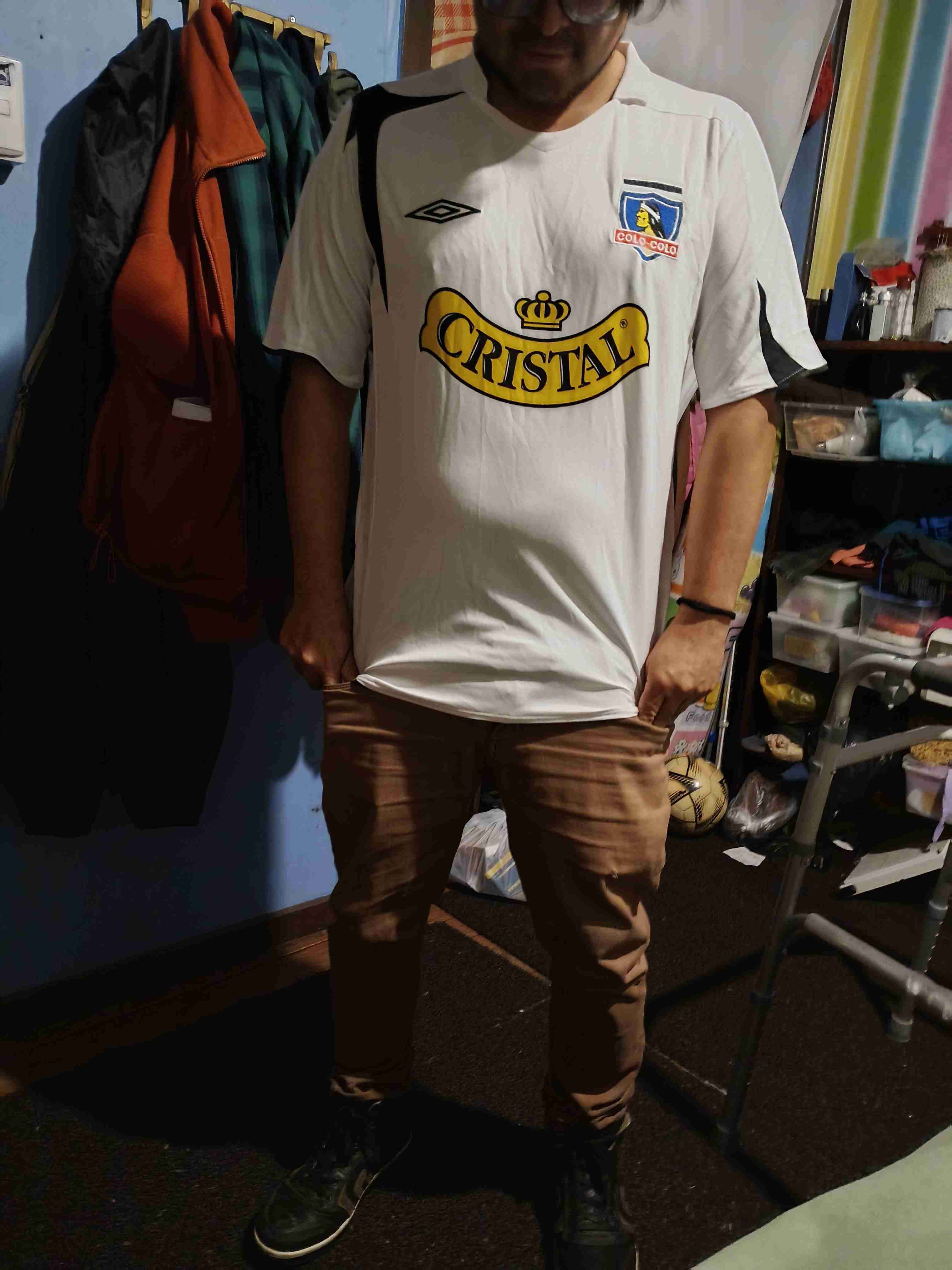 Camiseta blanca del club Colo Colo con logo de Cristal. Buen estado y perfecta para hinchas.