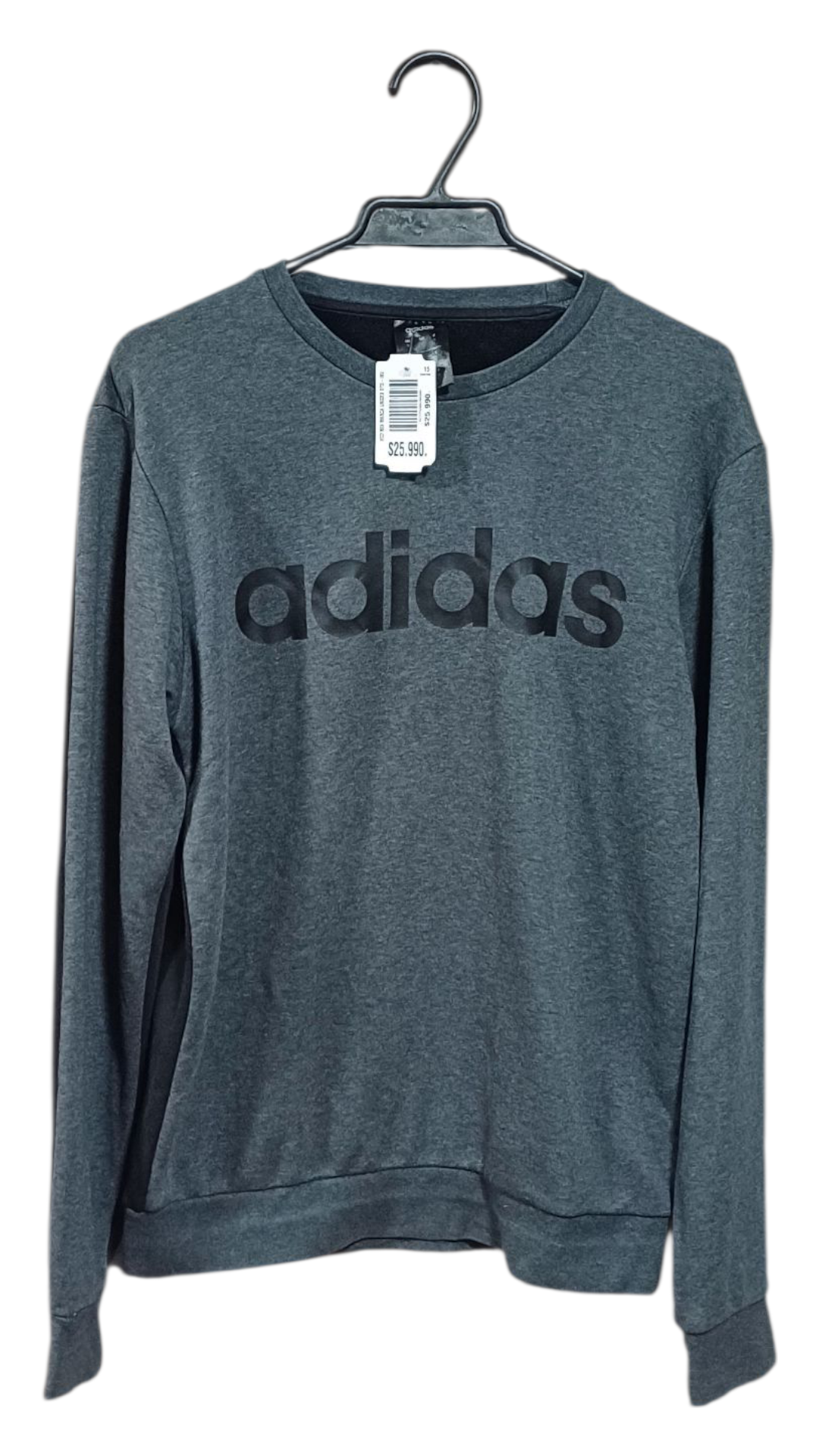 Polerón Adidas gris oscuro con logo frontal. Nuevo con etiqueta. Perfecto para días frescos.