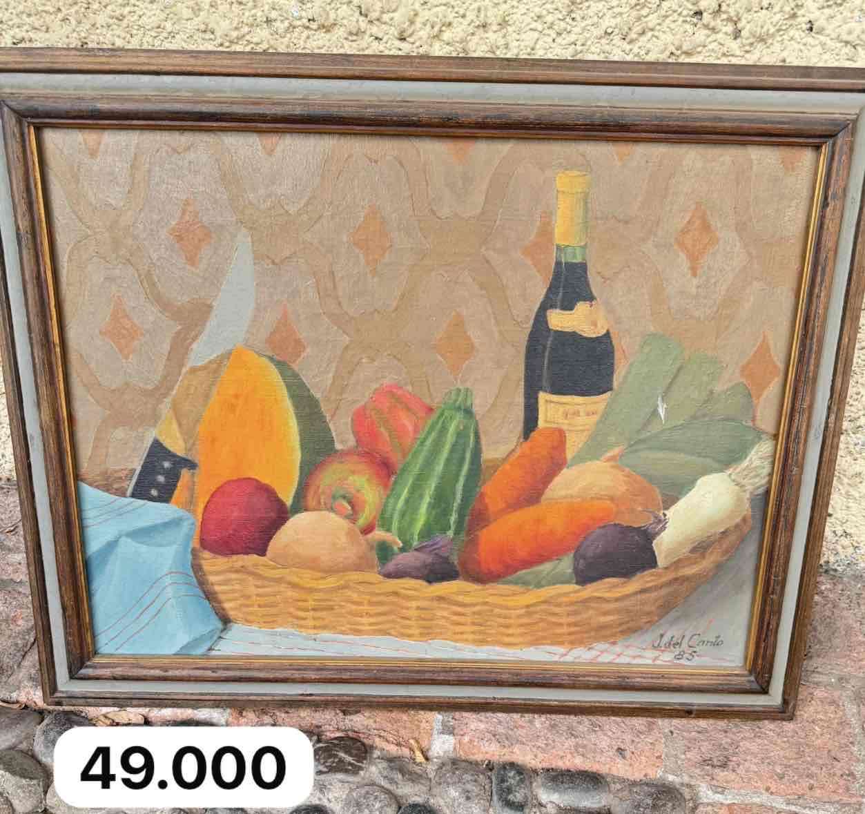 Hermoso cuadro bodegón en tonos cálidos. Ideal para decorar la sala o comedor. En buen estado.