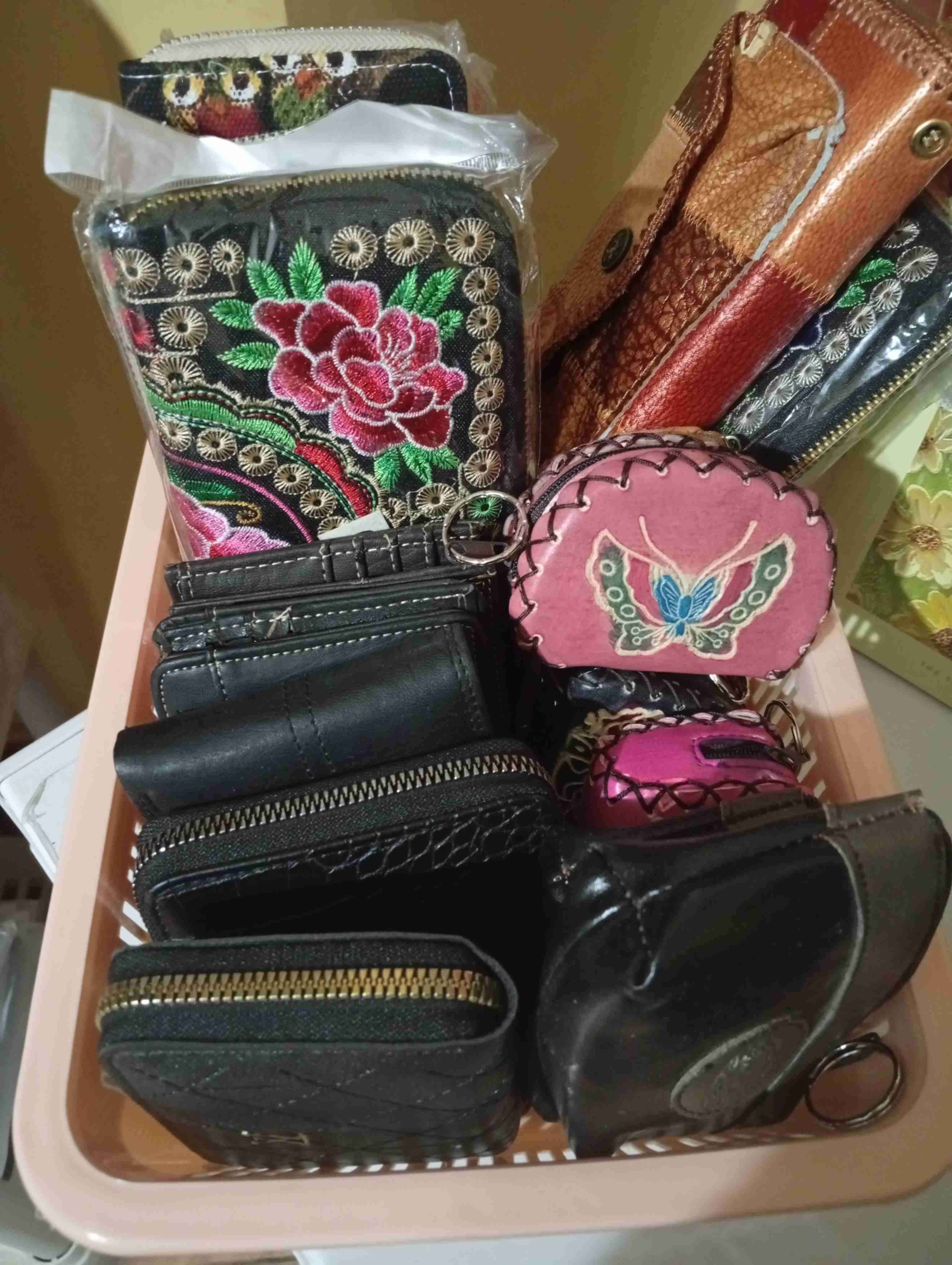 Varios monederos con diseños bordados y colores vibrantes. Ideales para guardar monedas y billetes. En buen estado.