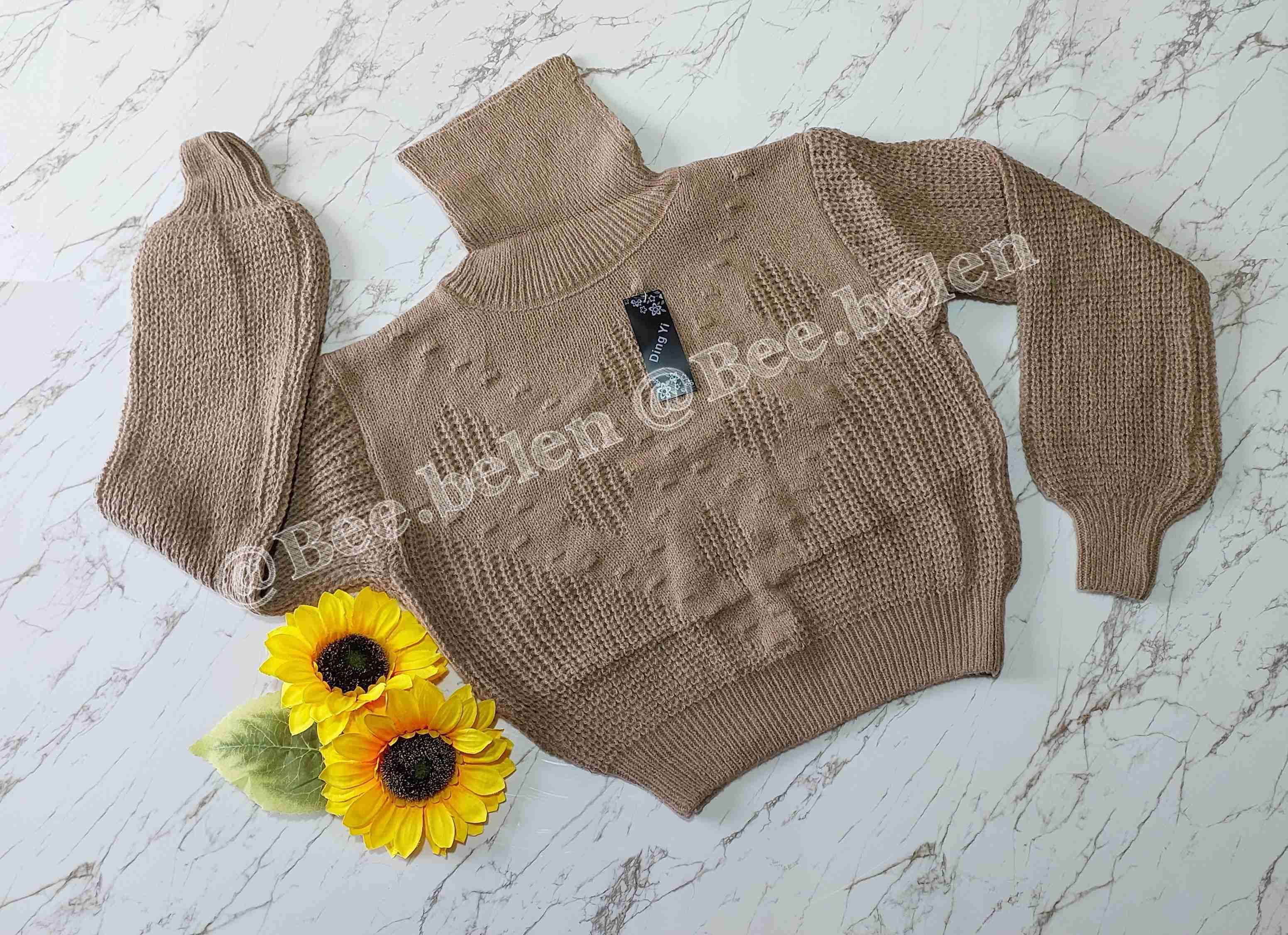 Suéter de punto marrón con cuello alto, ideal para el invierno. Nuevo, talla estandar que abarca s m l