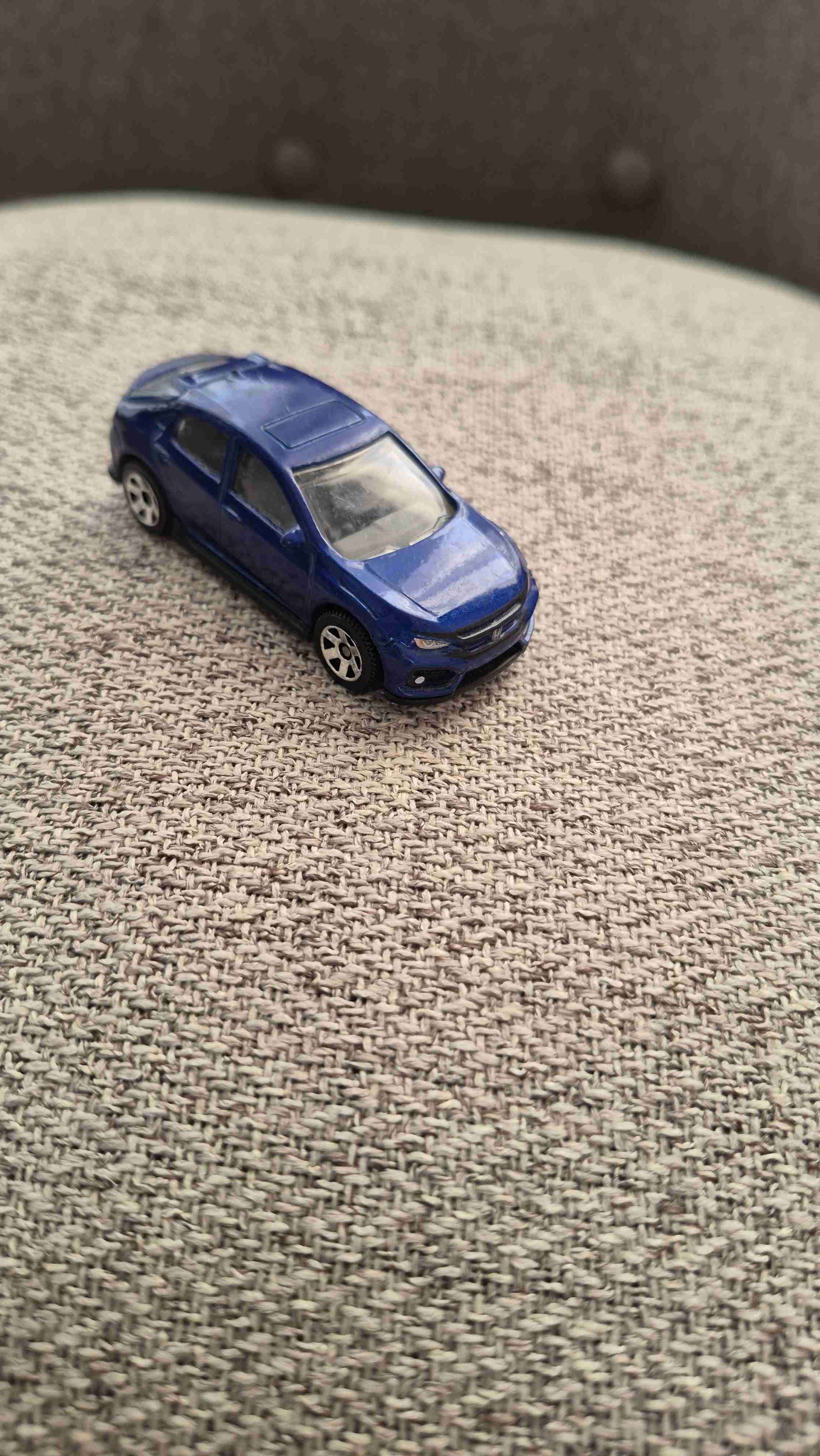 Pequeño auto de juguete en buen estado, ideal para coleccionistas o niños. Color azul metalizado.